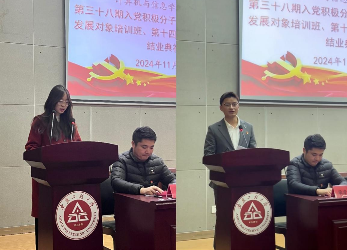 典礼在庄严的国歌声中拉开帷幕。第十四期预备党员培训班班主任周芳婷对本次培训班的教学安排和学习情况进行总结。她希望大家发挥党员先锋模范作用,传递正能量和好声音。优秀学员代表张卓妍和李结分别发言,他们表示,学习的脚步永不停歇,求知之心永不落幕,将时刻以一名共产党员的标准严格要求自己,在推进强国建设、民族复兴伟业中贡献智慧与力量。领导和老师为本次培训班优秀学员颁发了荣誉证书并合影留念。