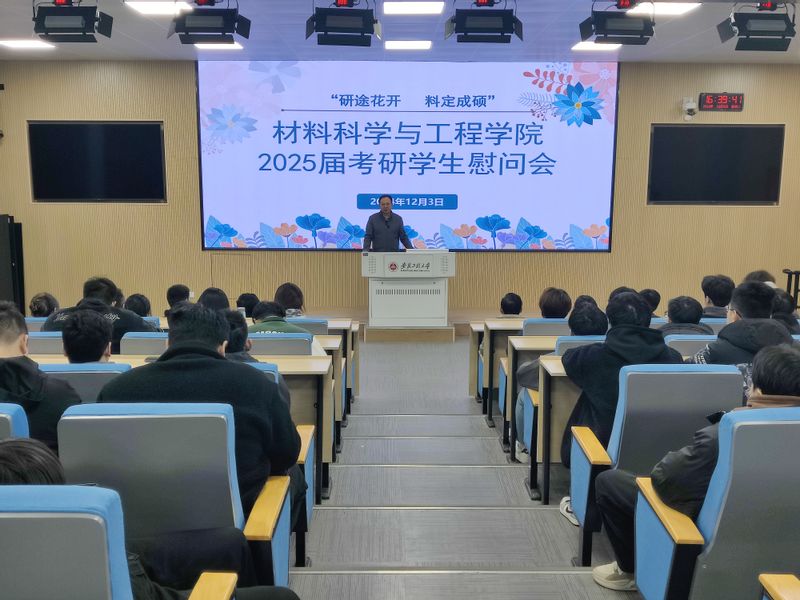 本网讯为缓解考研学子的备考压力,提振士气,增强信心,传递温暖,12月3日,材料科学与工程学院于5教217召开2025届考研学生慰问会。院长左如忠、副院长陶锋、各系负责人、教师代表、辅导员、2025届考研学生参会,会议由院党委副书记方玖胜主持。