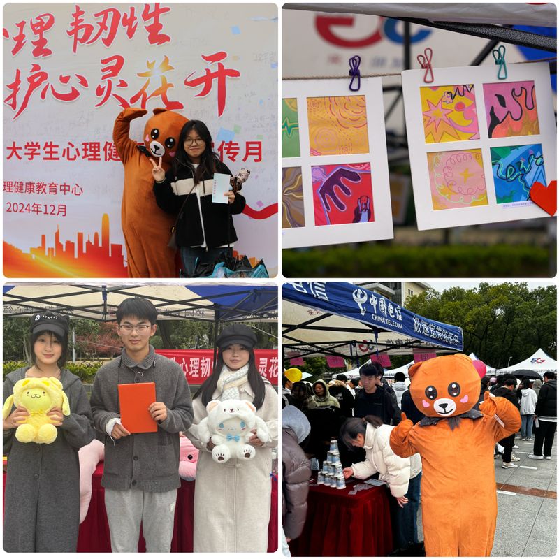 现场氛围热烈,欢笑声此起彼伏。同学们不仅留下体验的足迹、获得精美的礼品,也带走珍贵的感受和思考。食品232班张梓谦表示:“第一次参加心理游园会,深刻体验到积极情绪与人际协作的重要性,将以更加阳光乐观的心态迎接每一天。”给排水212班伍非凡感叹道:“沉浸在考试焦虑中的我,通过参加心理游园会活动充分释放了学习压力,体验了心灵的放松,增强了考研冲刺的动力。”