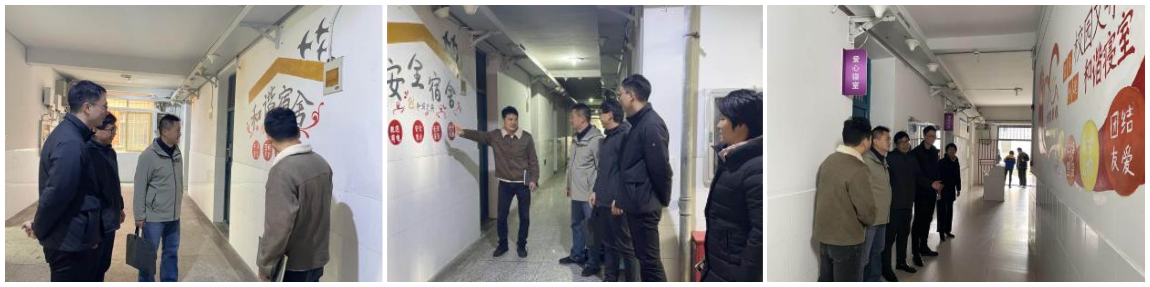 在参观过程中,他们认真地观赏着每一幅彩绘作品,脸上不时露出赞许的神情,对本次活动表示认同,认为这一活动具有诸多积极意义。李四军指出,墙体彩绘作品为宿舍环境增添了独特的艺术氛围,也是学生利用专业能力“学起来”“和起来”的最好实践。杜松涛提到这些作品很好地展示了学生们的创造力和想象力,是很好的美育和劳育相结合的活动。同时,也给墙体彩绘提出了一些建议和意见。