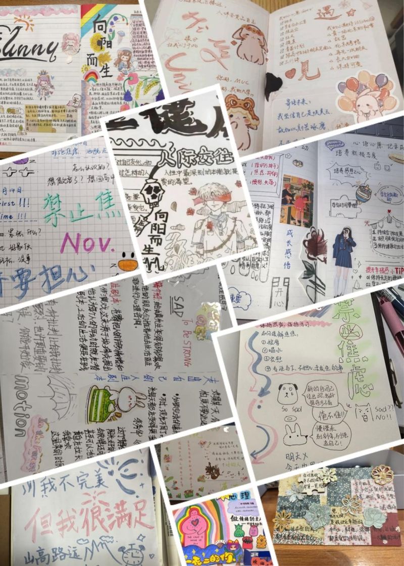 通过手账记录,学生能够更加细致地观察并认识自己的情绪、想法和行为,从而深化自我认知,更好地了解自己。持续记录成长过程中的点滴进步和美好瞬间,有助于培养积极的生活态度,增强面对困难和挑战的勇气。同学们通过展示各自的手账内容开展分享与交流,增进相互理解和支持,形成积极的社交氛围。