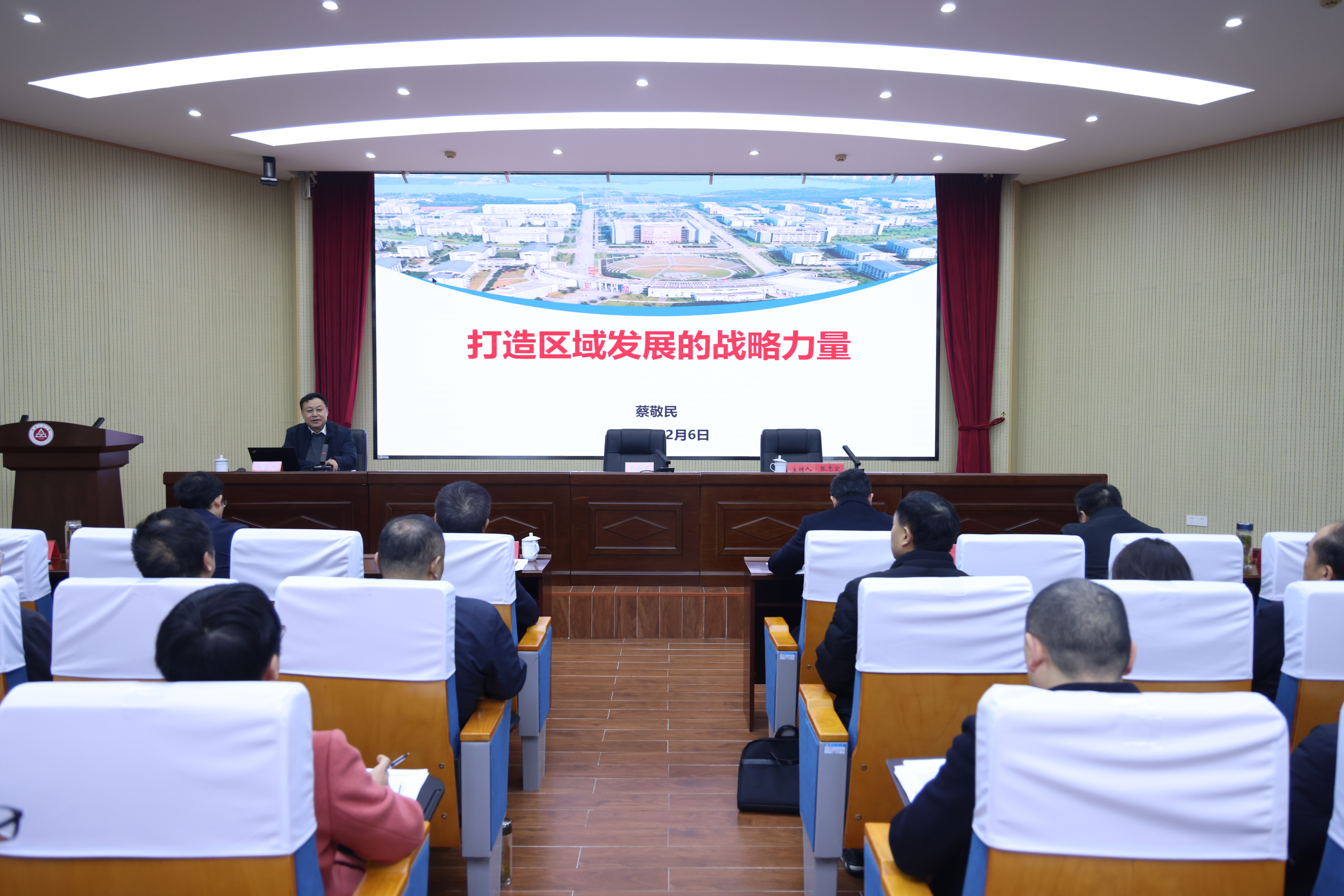 本网讯12月6日,学校邀请安徽大学原党委书记蔡敬民教授作题为《打造区域发展的战略力量》的专题报告。全体在校校领导、学校处级干部和学院教授委员会主任参加报告会。报告会由校党委书记张志宏主持。
