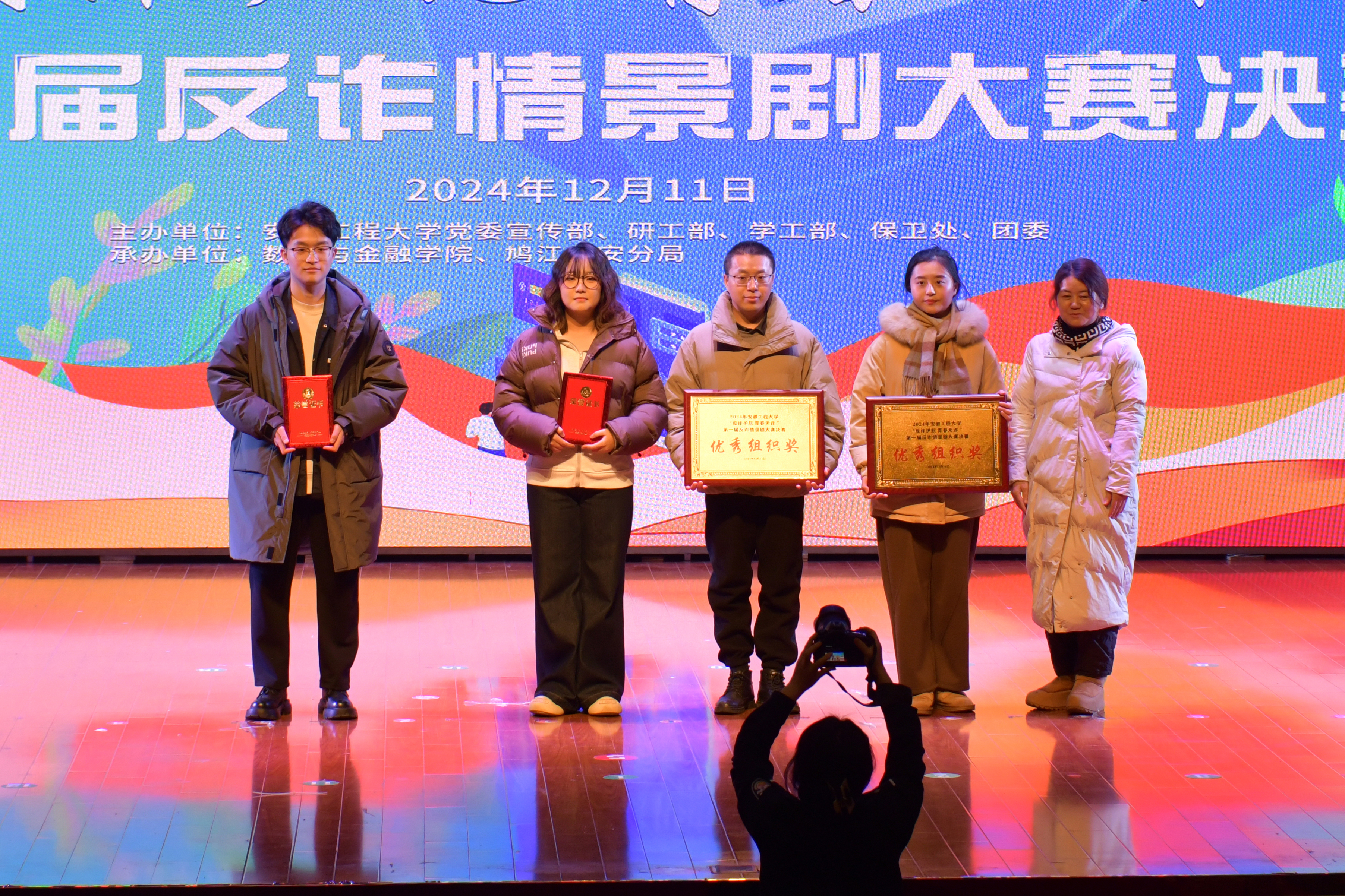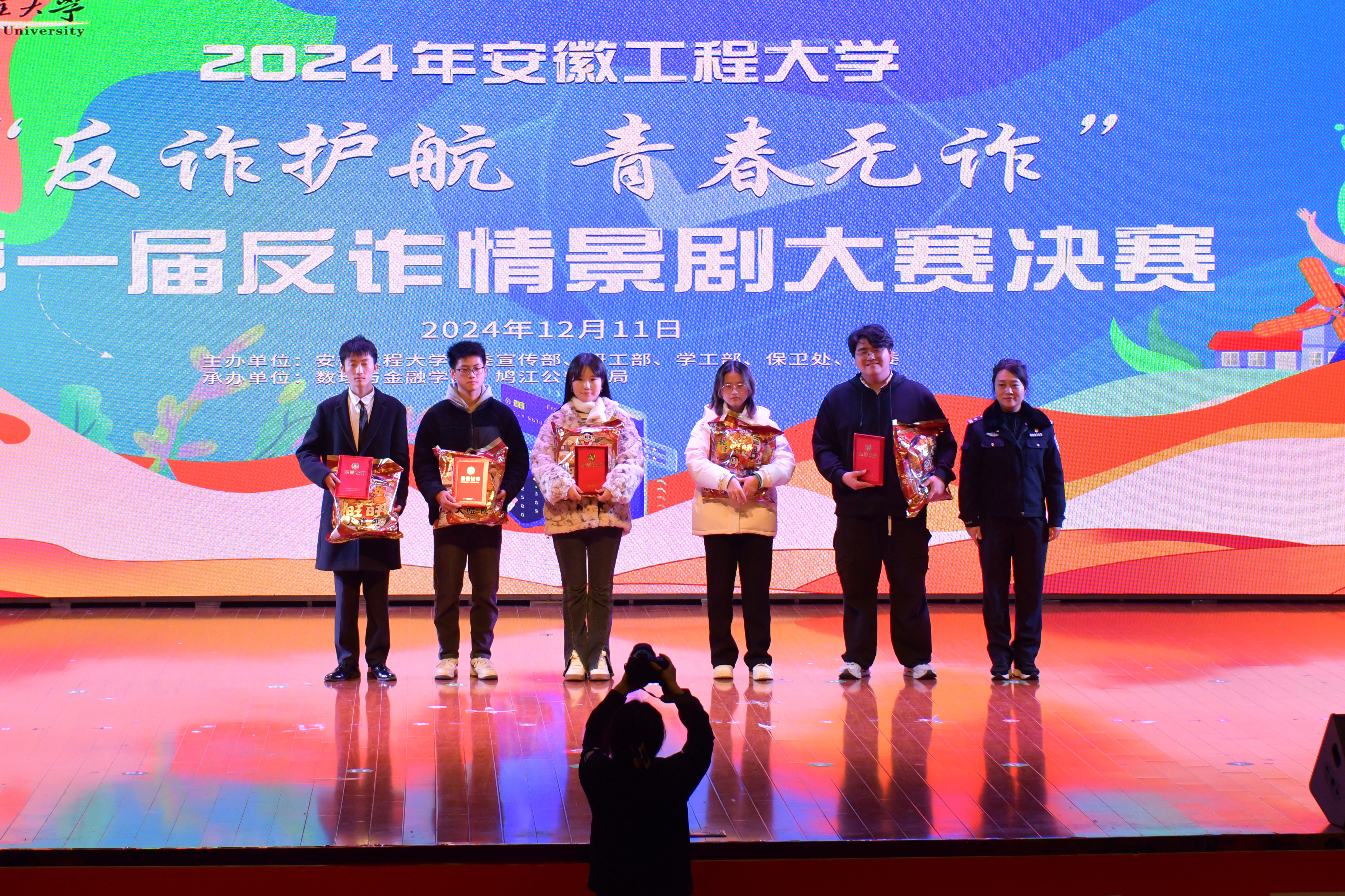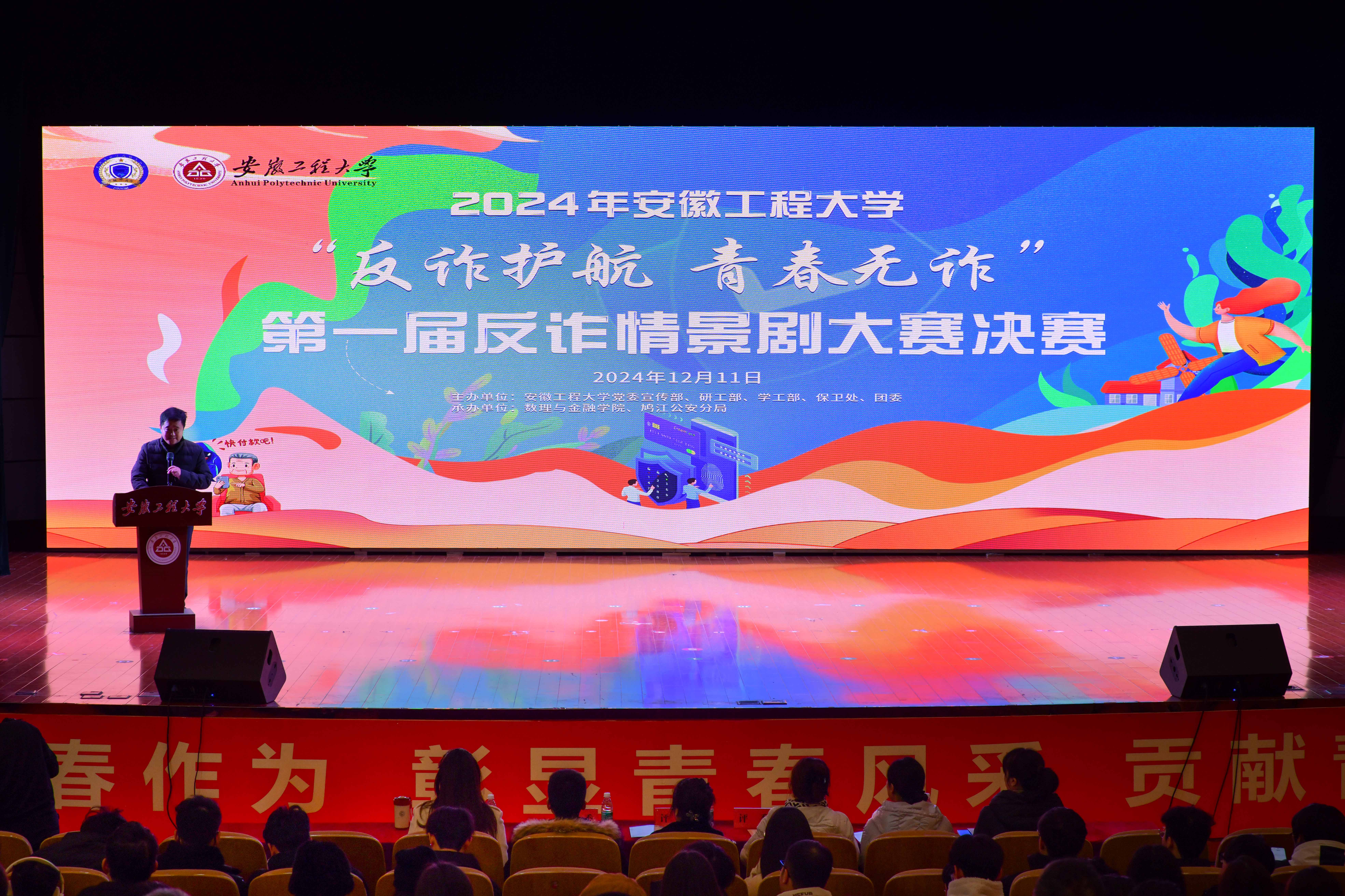 本网讯12月11日,学校第一届反诈情景剧大赛决赛在师生活动中心大礼堂举办。经激烈角逐,《说谎的蚂蚱》《反诈联盟》斩获一等奖,《爱的伪装》《今天你被骗了吗》《茧房》荣获二等奖,《男朋友?女朋友?》《骗骗相报》《善恶的彼端》《快门下的陷阱》《一惊一诈》获得三等奖,其中《爱的伪装》和《反诈联盟》获得最佳人气奖,机械与汽车工程学院和数理与金融学院获得优秀组织奖。校党委常委、副校长张开炳出席并讲话,芜湖市公安局鸠江公安分局党委委员、副局长佘辉,城东新区派出所所长陶红云,学校党委宣传部、学工部、研究生工作部、保卫处、团委、数理与金融学院等部门负责人,全校1000余名师生在现场观看比赛。鸠江公安分局反诈中心民警和学校师生代表担任大赛评委。