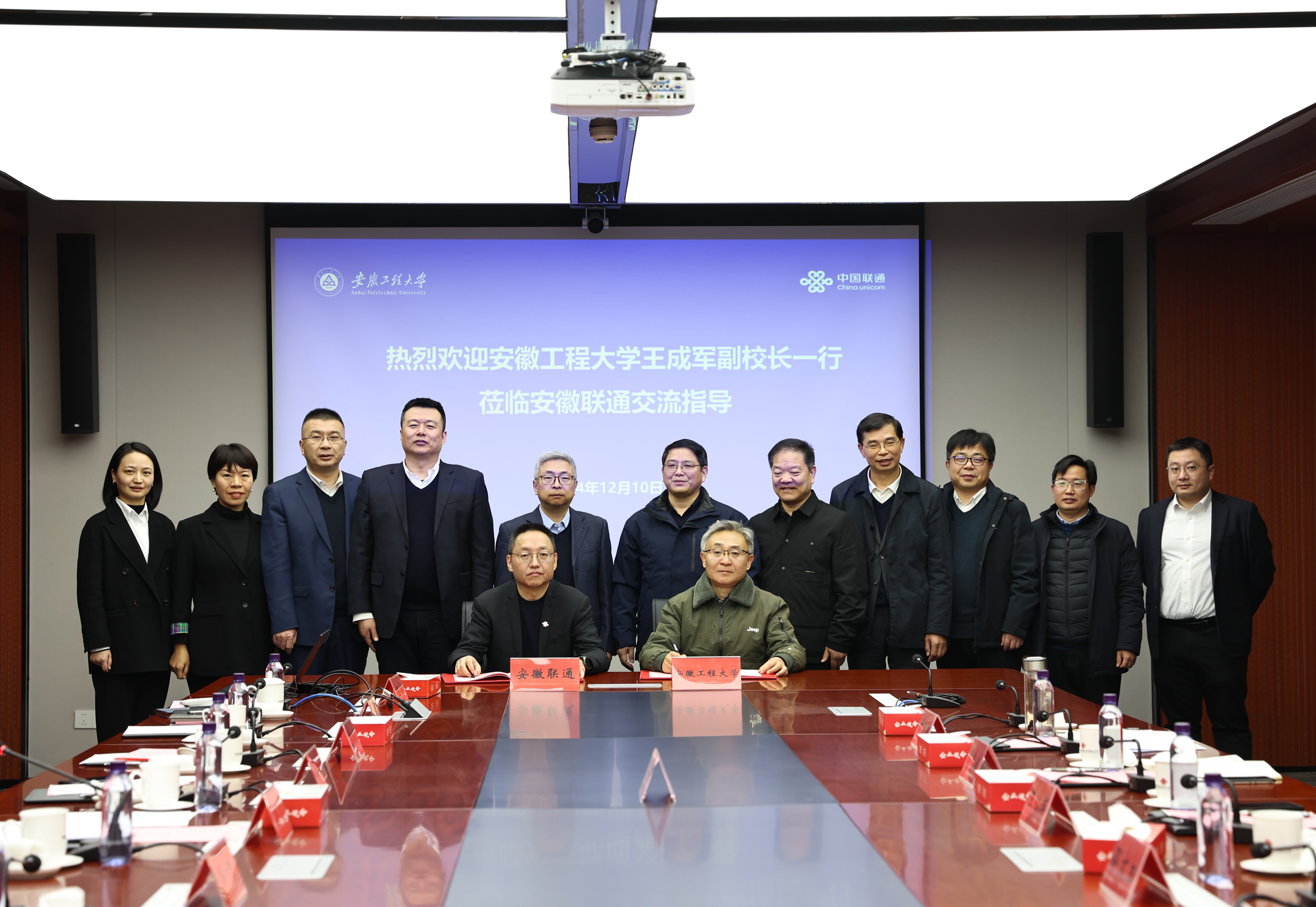 王成军对中国联通安徽分公司长期以来关心支持学校事业发展表示感谢,并介绍了学校的发展历史、办学定位、学科建设以及近年来在服务安徽首位产业、战新产业、未来产业等方面的成效。他指出,学校坚持立足地方、融入长三角、辐射全国,积极布局机器人工程、人工智能等新工科专业,在省内率先成立人工智能学院和人工智能研究院,建有国家级机器人产业学院。安徽联通具有前瞻性战略布局和深厚行业积淀,在推动安徽产业数字化转型方面取得了显著成效。他表示,希望在前期良好合作的基础上,双方聚焦智慧校园建设、人才培养、高校算力中心等方面开展合作,积极搭建“算力+案例”实训实践平台,坚持联合互通、联手共通,促进优势互补,实现互利共赢,共同为安徽“三地一区”建设提供有力支撑。