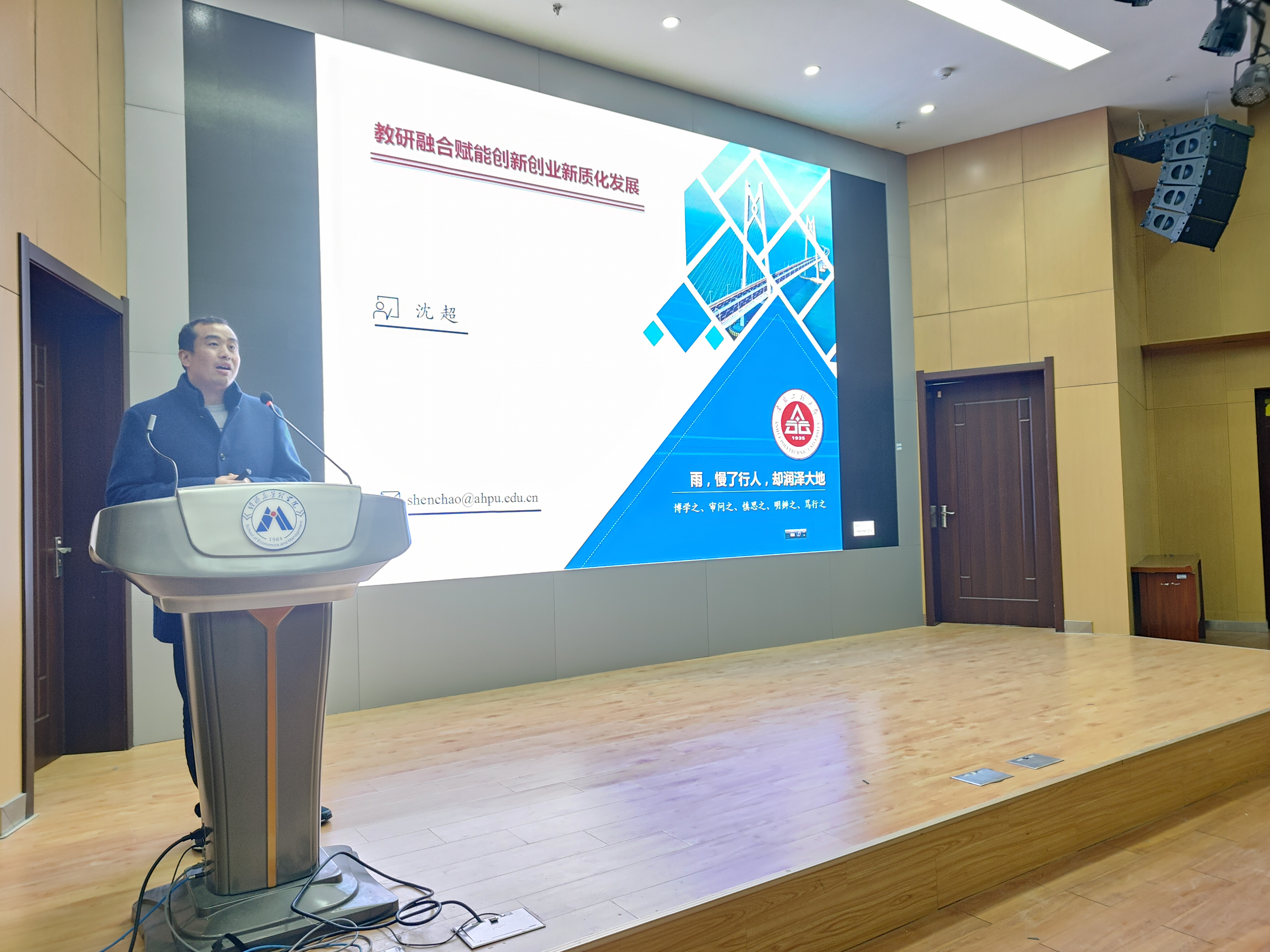 沈超博士以“教研融合赋能创新创业新质化发展”为主题,以自身参赛获奖案例为引,从创业选择、团队建设、市场定位等方面为师生们进行了一个全面的培训。