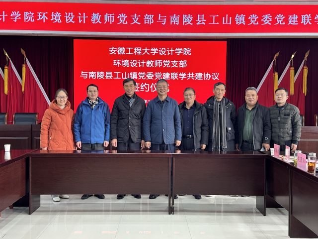 本网讯为深入学习贯彻党的二十大、二十届三中全会精神,落实习近平总书记考察安徽重要讲话精神,设计学院与南陵县工山镇携手深化校地、校企合作,共同探索乡村振兴的新路径。12月14日,设计学院党委组织环境设计系教师党支部与南陵县工山镇党委开展党建联学共建,与工山镇乡村振兴运营单位村尚文旅进行校企产学研合作交流。社会合作处处长刘金斌,设计学院常务副院长张学东、党委副书记(主持工作)彭海燕、组织员张焱以及环境设计系教师党支部全体党员教师参加共建交流活动。
