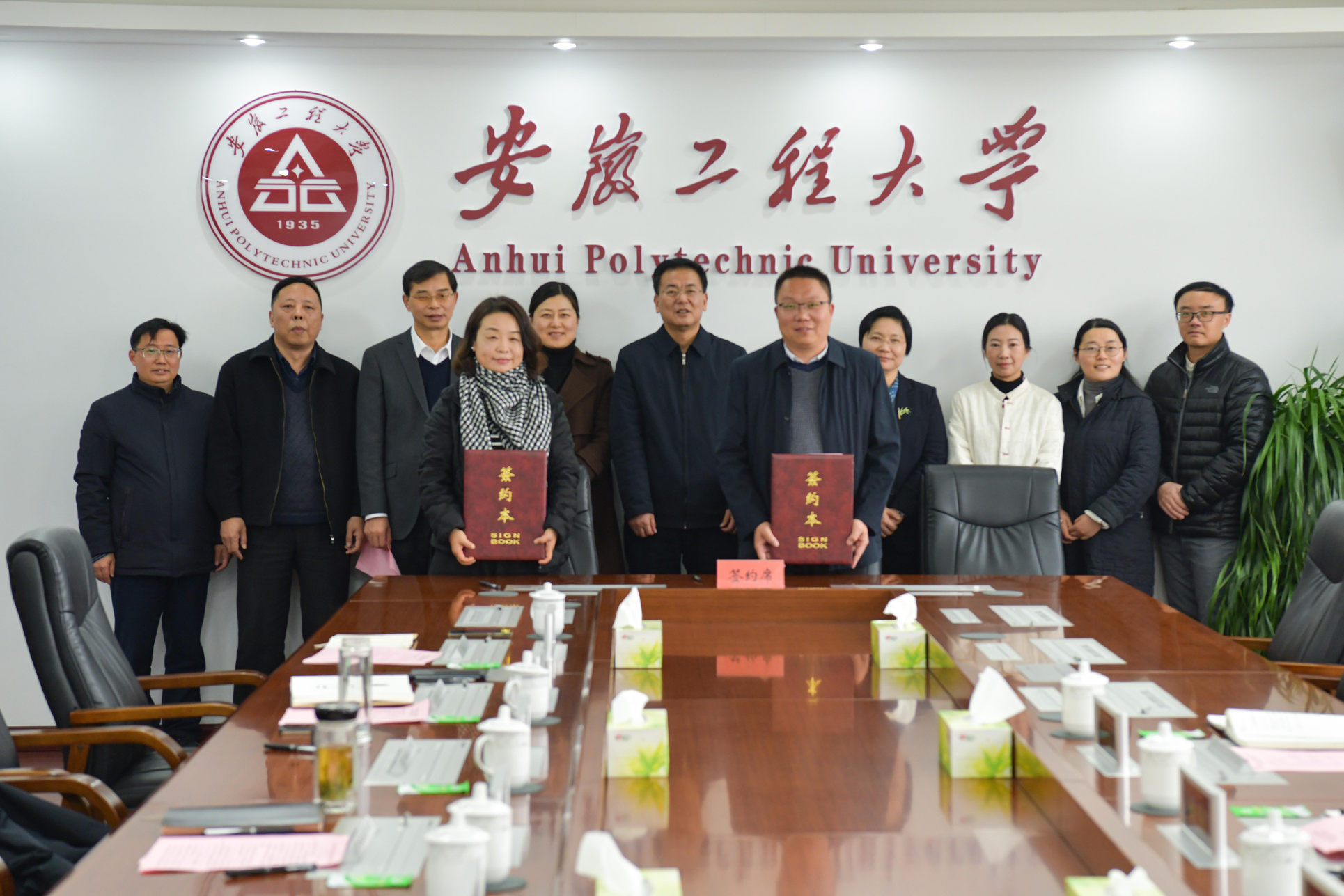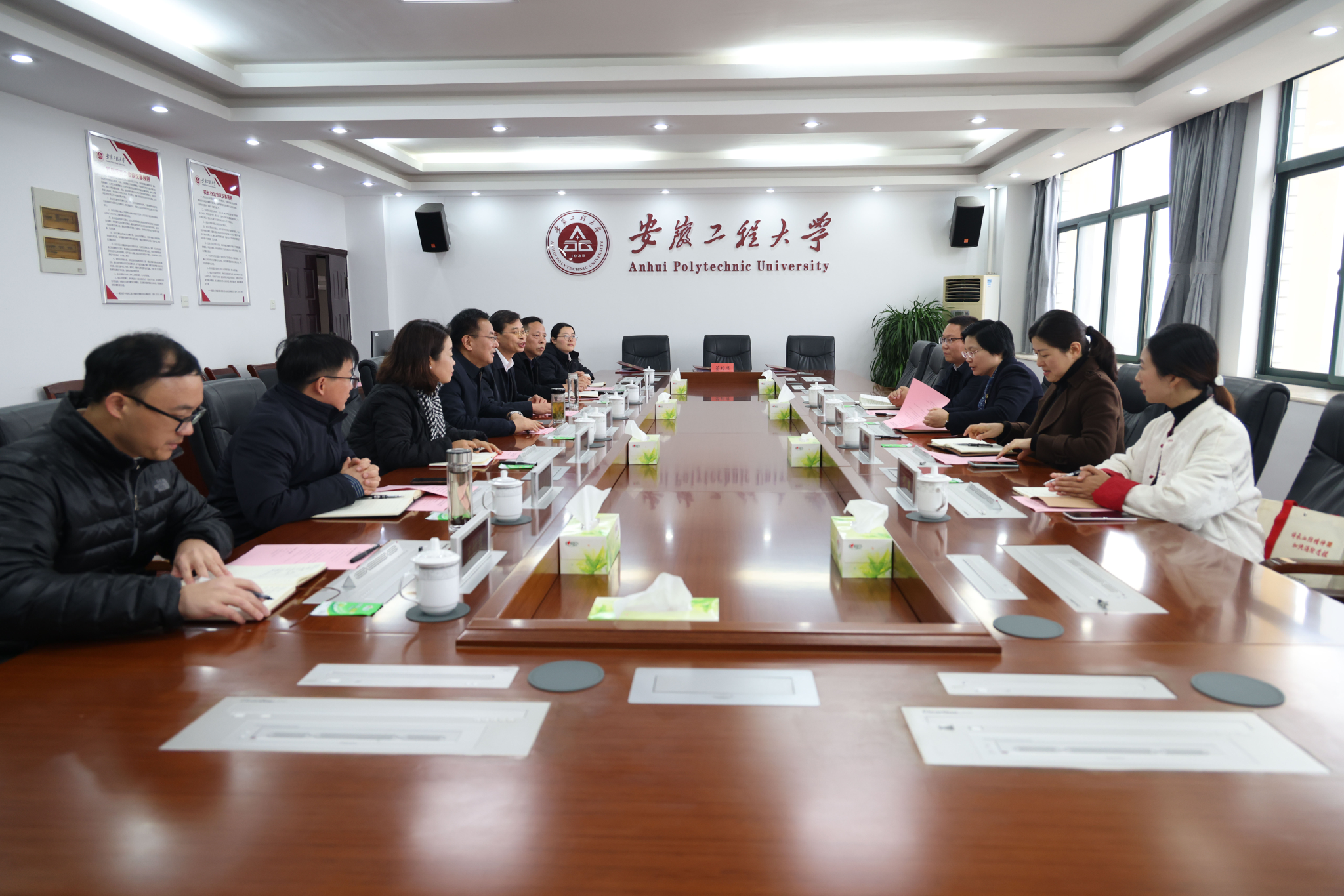 本网讯12月18日,湾沚区委常委、组织部长赵彗星,副区长缪青,陶辛镇党委书记汪火树,陶辛镇镇长濮成虎一行来校签署“大学小镇”(陶辛)共建合作协议。校党委副书记、校长黄友锐出席,办公室、社会合作处、科技处、纺织服装学院相关负责人参加。会议由社会合作处处长刘金斌主持。