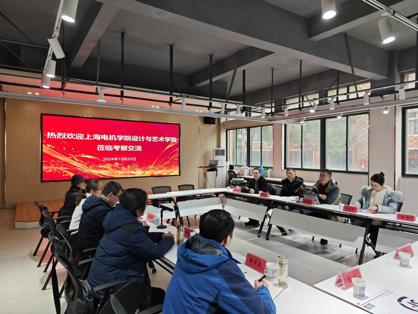 本网讯12月23日,上海电机学院设计与艺术学院院长周志勇一行到设计学院交流学科专业建设以及人才培养工作。设计学院党政领导、黄凯教授等参加交流。