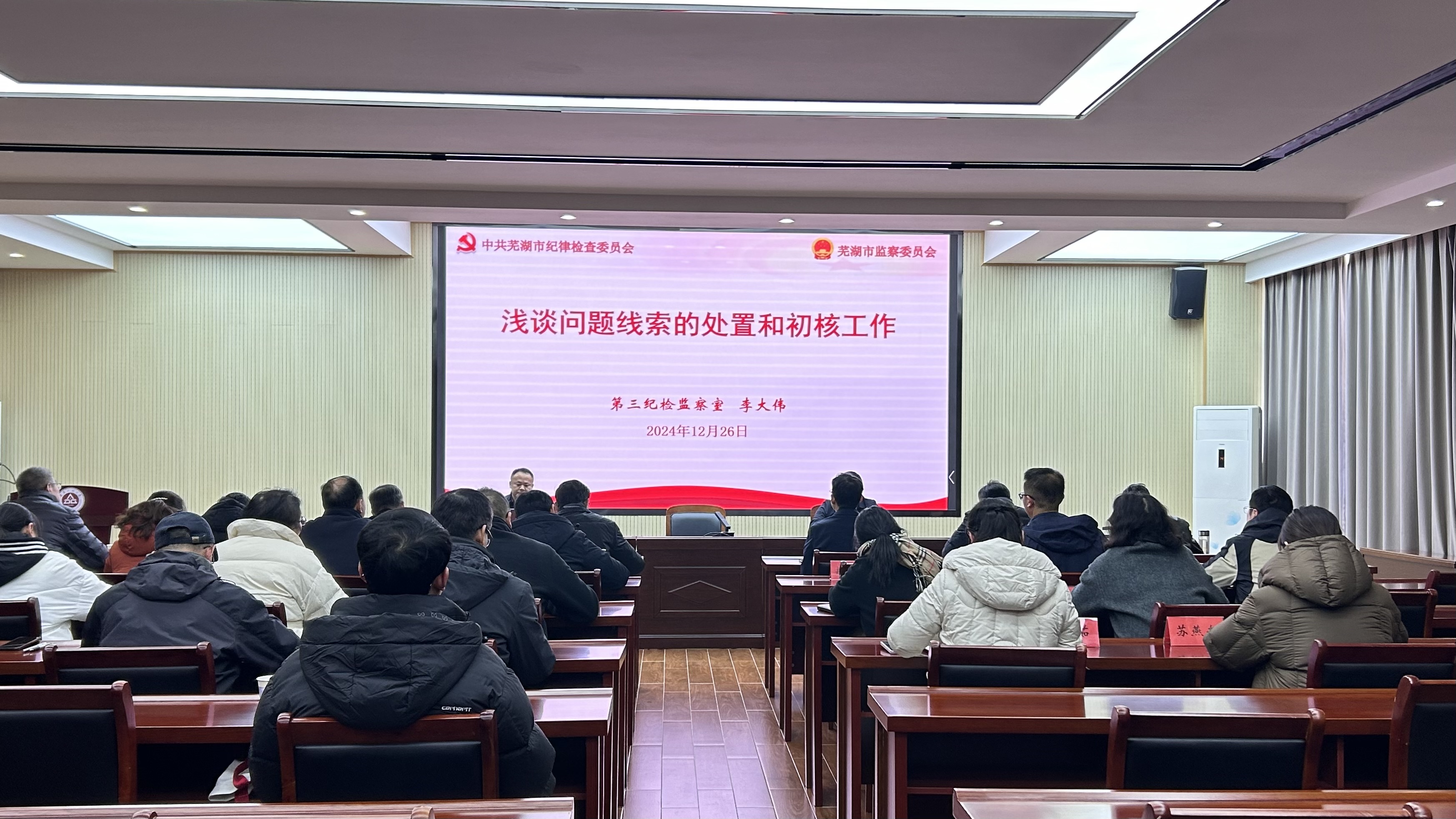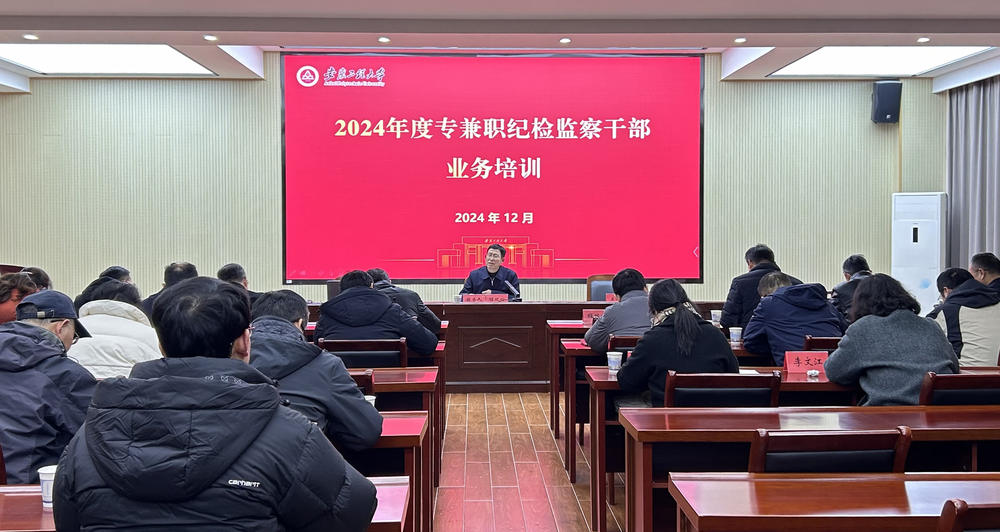 本网讯12月26日,学校纪委在A座1314会议室开展2024下半年纪检监察干部集中业务培训。校党委常委、纪委书记、监察专员程双四,芜湖市纪委监委第三纪检监察室副主任李大伟分别作专题培训报告。学校纪委委员,二级纪委书记、纪检委员,纪委办和巡察办工作人员等共计30余人参加培训。培训会由校纪委副书记、纪委办公室主任郭广春主持。
