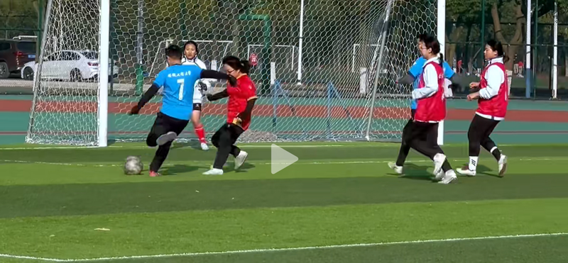比赛开始后,场上双方你来我往展开了激烈交锋,女足队员们朝气蓬勃、敢打敢拼,教工队员们精神抖擞、稳扎稳打。比赛始终在友好欢乐的氛围中进行,每一次漂亮的过人、每一脚有威胁的传球、每一记精彩的射门都会得到双方的叫好。