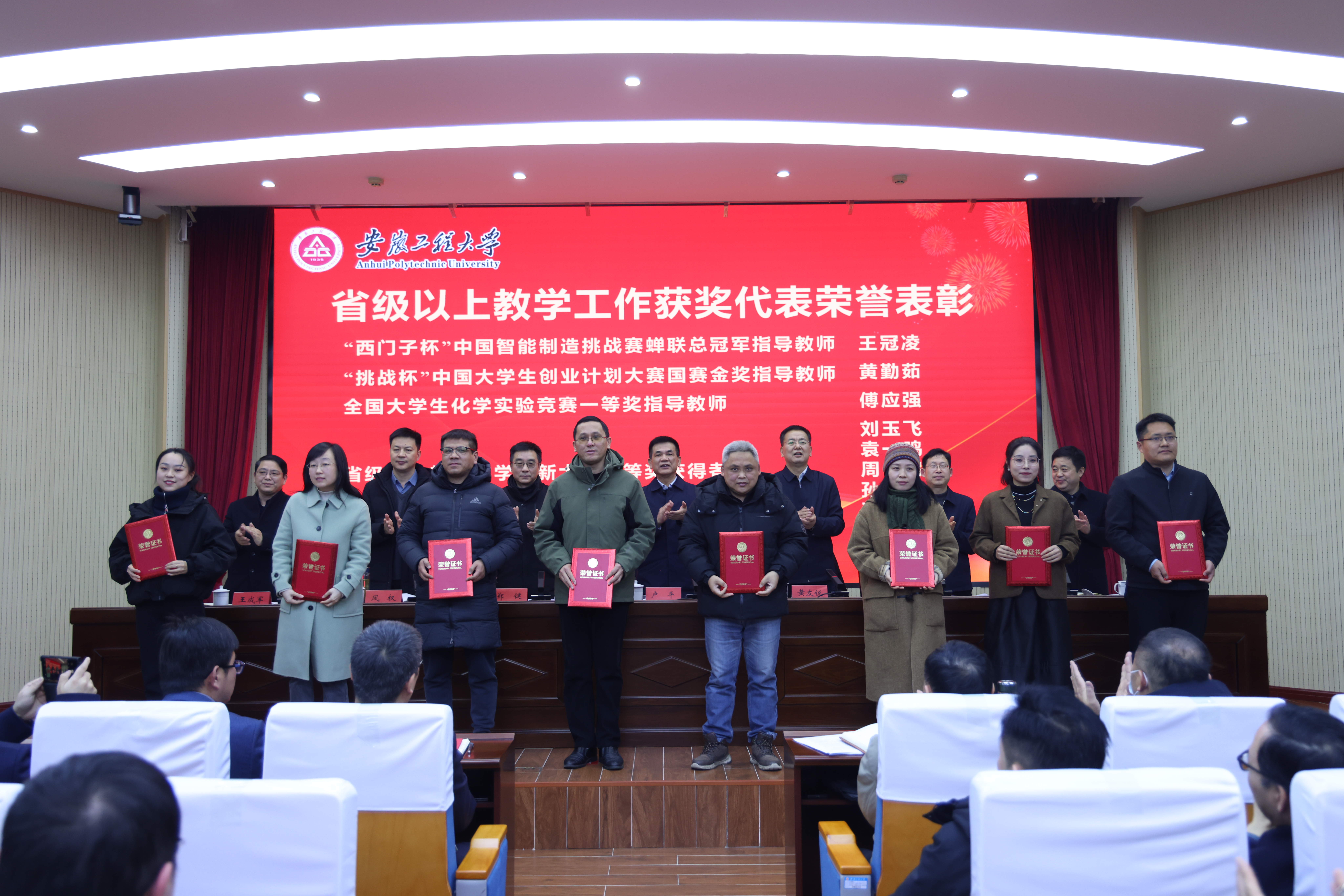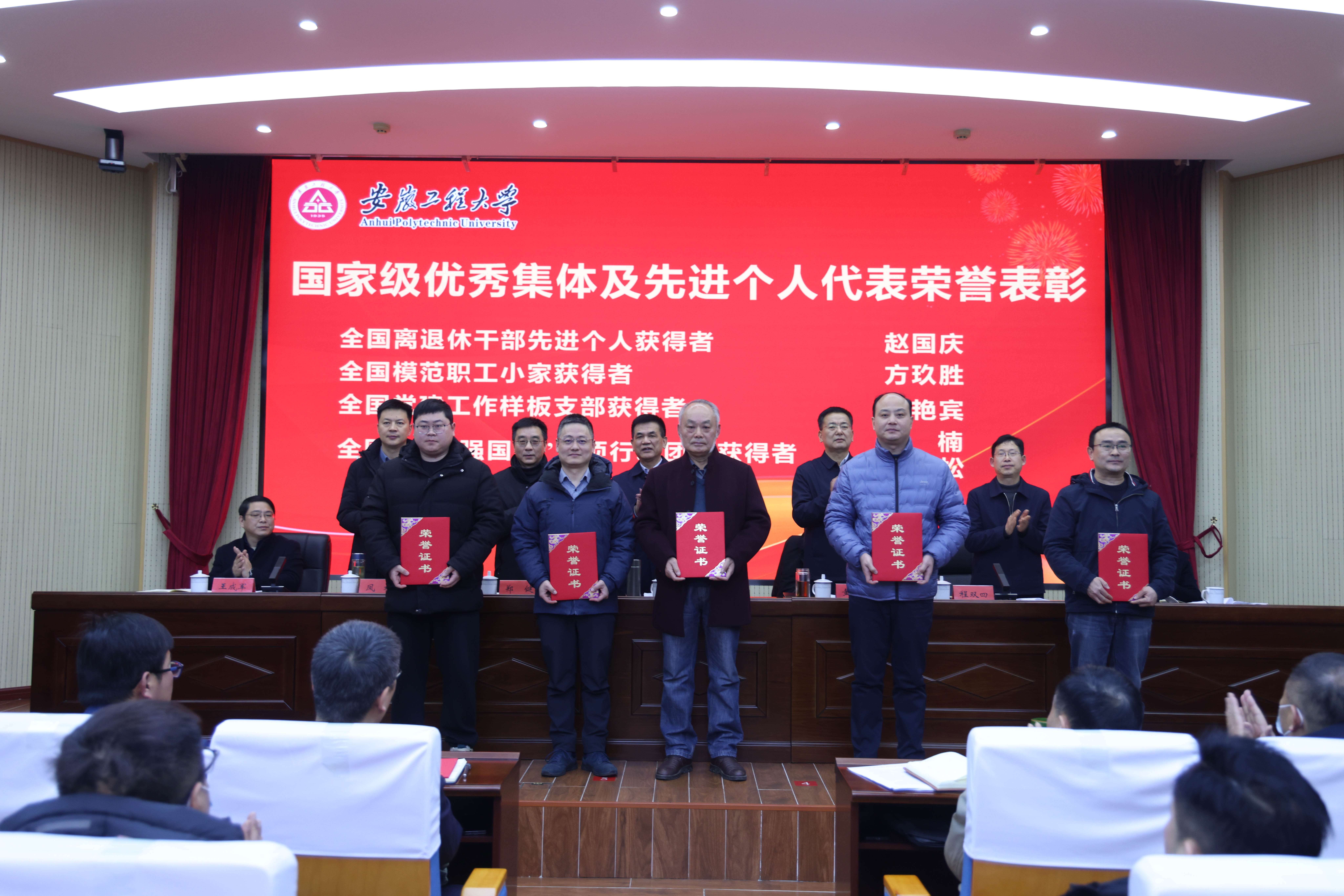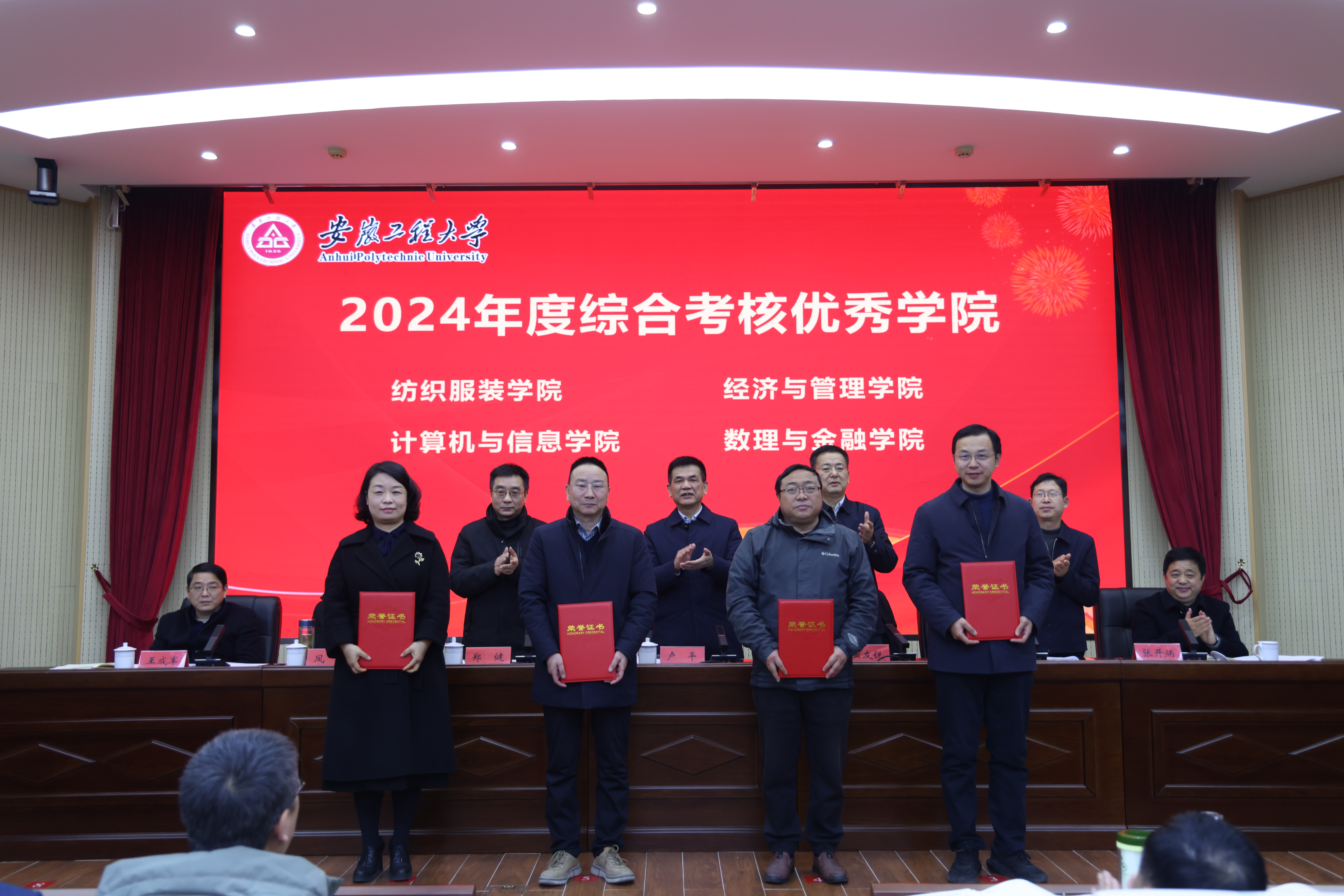 校党委副书记、校长黄友锐代表学校,对2024年度取得的成绩表示祝贺,对全体师生的努力表示感谢,对2025年度重点工作做出部署。他指出,2025年是贯彻落实习近平总书记考察安徽重要讲话精神的重要一年,也是学校实施“十四五”规划的收官之年,是谋划“十五五”规划的开局之年,是全力冲刺博士学位授予单位的关键一年。他要求,要强化党建引领,把政治建设摆在首位,扎实推进党建示范创建和质量创优工作,扎实做好巡视“后半篇文章”;围绕人才培养中心,落实立德树人根本任务,全力做好本科教育教学审核评估迎评工作,深入实施个性化人才培养改革,抓好学生就业;抓好高质量发展内涵,坚持人才强校、学科固本、科研筑基、激发活力;守牢校园安全底线,严格落实意识形态工作责任制,加强风险研判,保证校园安全稳定。