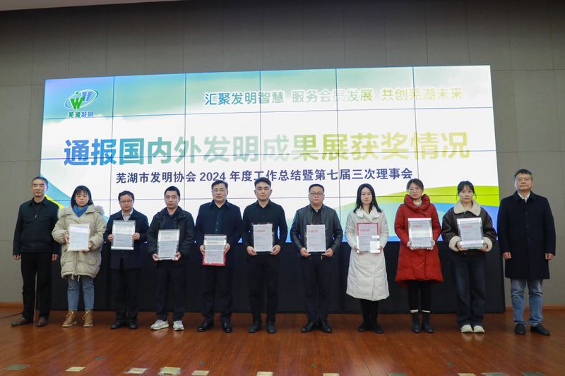 本次会议主题为“汇聚发明智慧 服务会员发展 共创芜湖未来”,旨在总结2024年的工作成果,部署新阶段发展任务,进一步推动芜湖市发明创新事业快速发展。大会表彰了国内外权威发明成果展获奖项目发明人以及芜湖市发明协会2024年度“杰出贡献奖”“创新人物奖”“创新成果奖”“巾帼发明奖”等各类获奖人员。