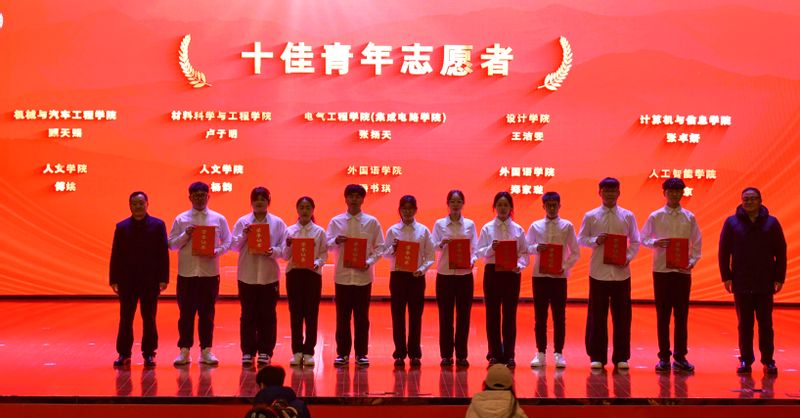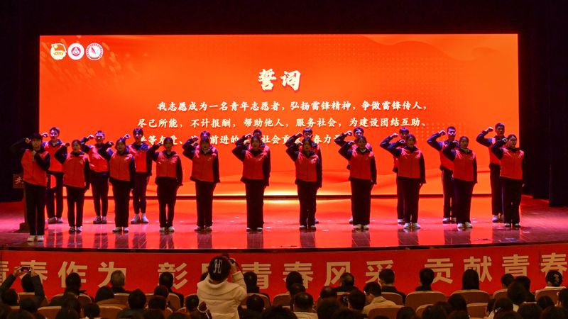 活动现场,为“团百花”志愿服务金奖团队授旗,表彰“十佳青年志愿者”,志愿者代表集体宣誓。