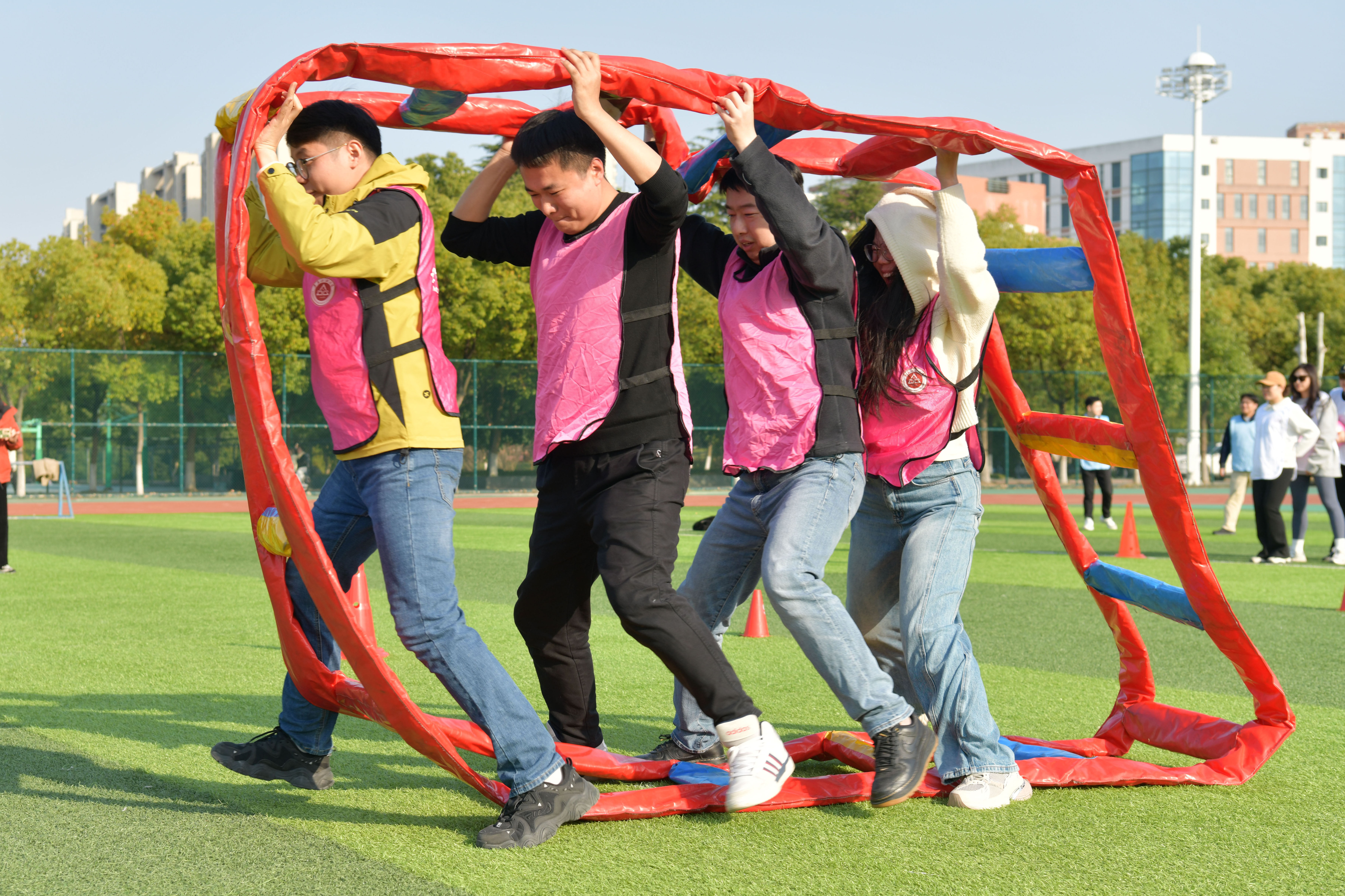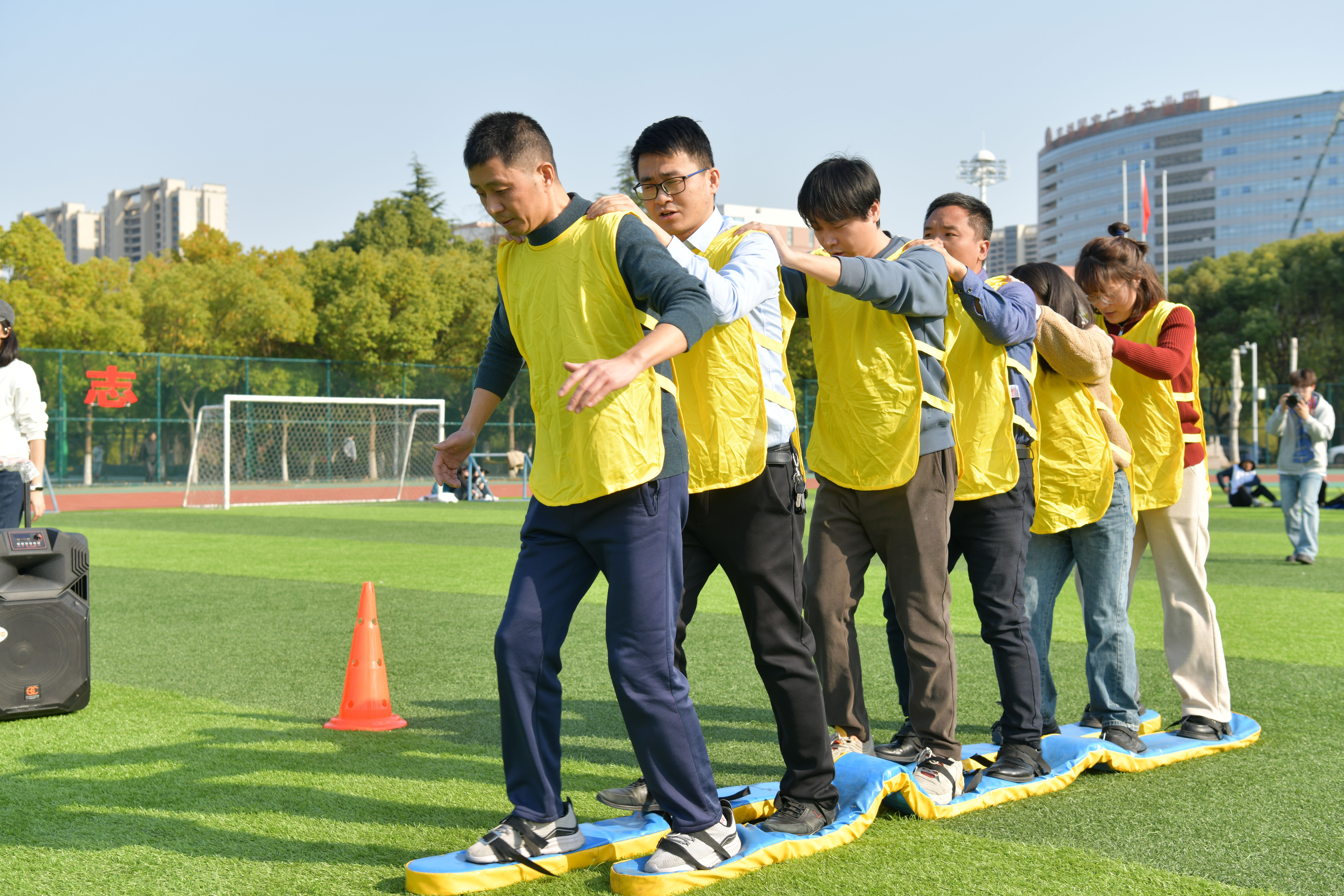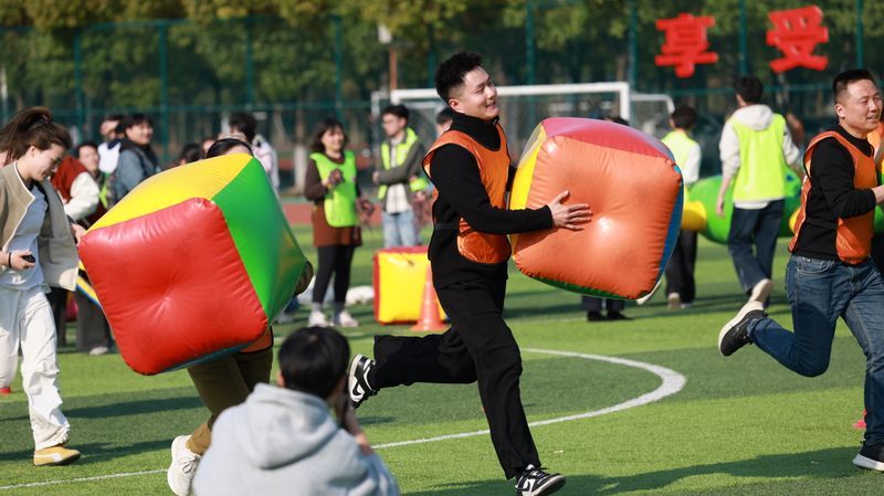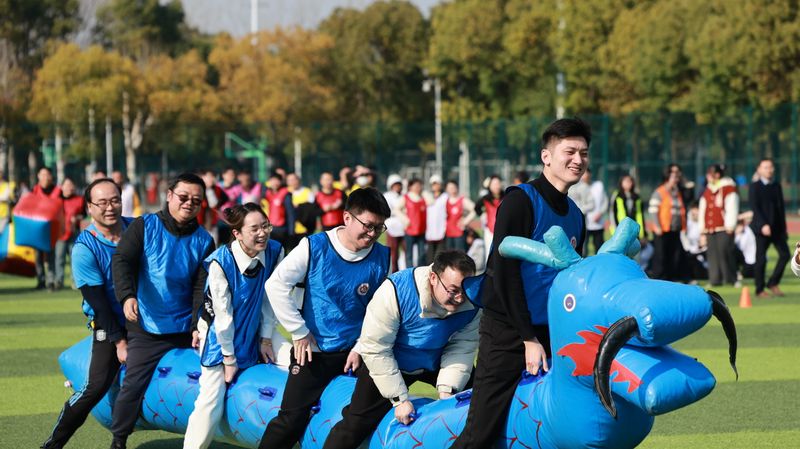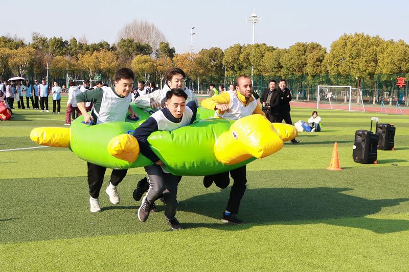 本次运动会共有19支代表队参加比赛,活动共设“同心协力”“龟兔赛跑”“财源滚滚”“勇往直前”“趣味夹球跑”“节节攀升”6个项目。比赛期间,参赛队员们齐心协力、全力以赴,现场观众跃跃欲试、情绪高涨,为场上队员热情呐喊、加油助威,场面热火朝天,欢声笑语连成一片。