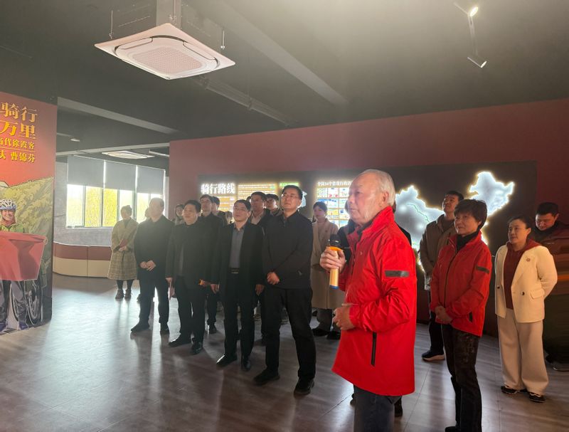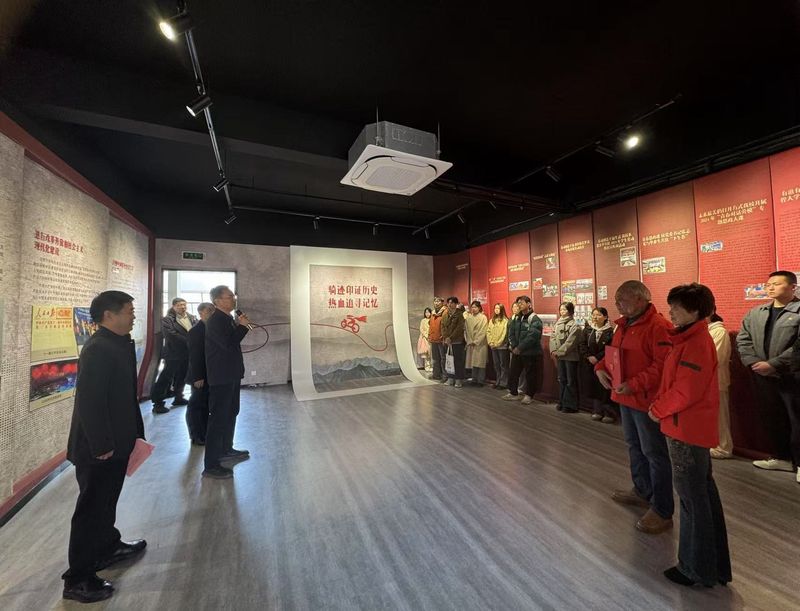 活动现场,赵国庆曹锦芬介绍了体验馆骑迹厅、体验厅展示内容,分享了红色骑行中的感人故事。