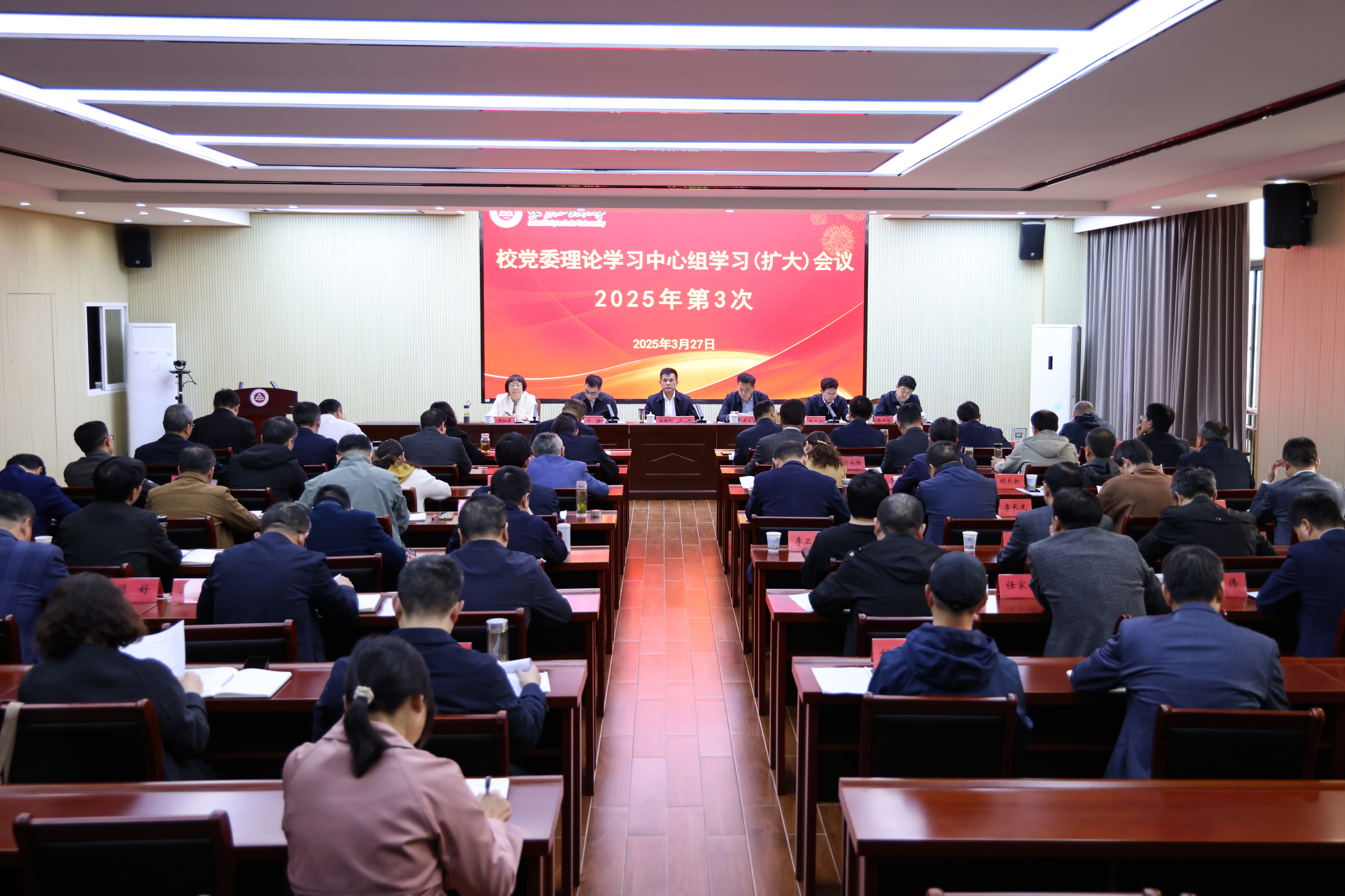 本网讯 3月27日,学校在A座1314会议室召开深入贯彻中央八项规定精神学习教育动员部署会暨党委理论学习中心组学习(扩大)会。校领导卢平、黄友锐、郑健、程双四、周虹屏、张开炳出席,二级党组织书记、部门及学院行政主要负责同志参加。会议由校党委书记卢平主持。