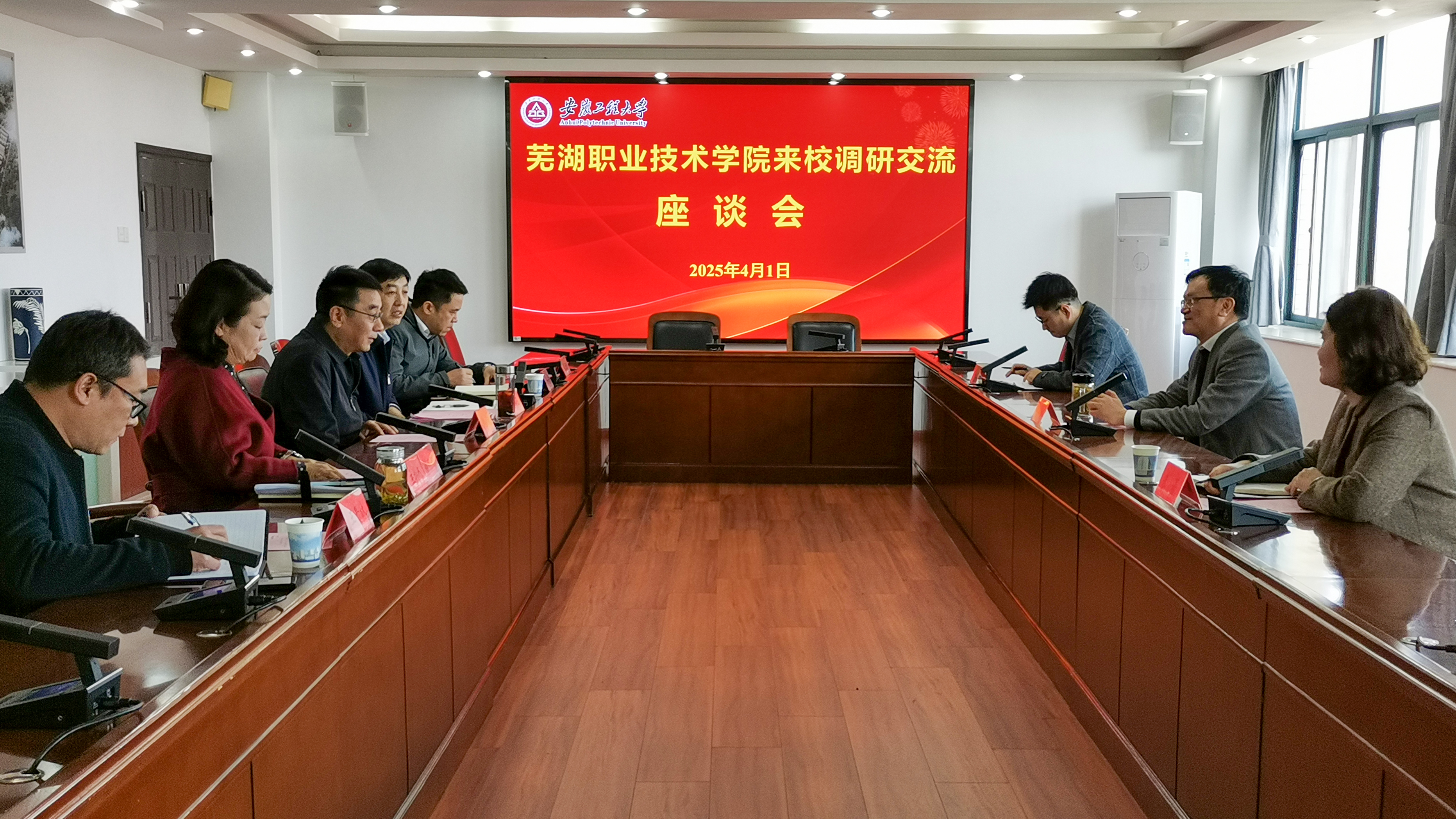 袁家和简要介绍了芜湖职业技术学院的历史沿革、办学特色和建设发展情况。他指出,安工程和芜湖职业技术学院地缘相近、人缘相亲,希望以此次调研为契机,持续加强交流联系,借鉴成功做法和宝贵经验,全力推动两校合作共赢。