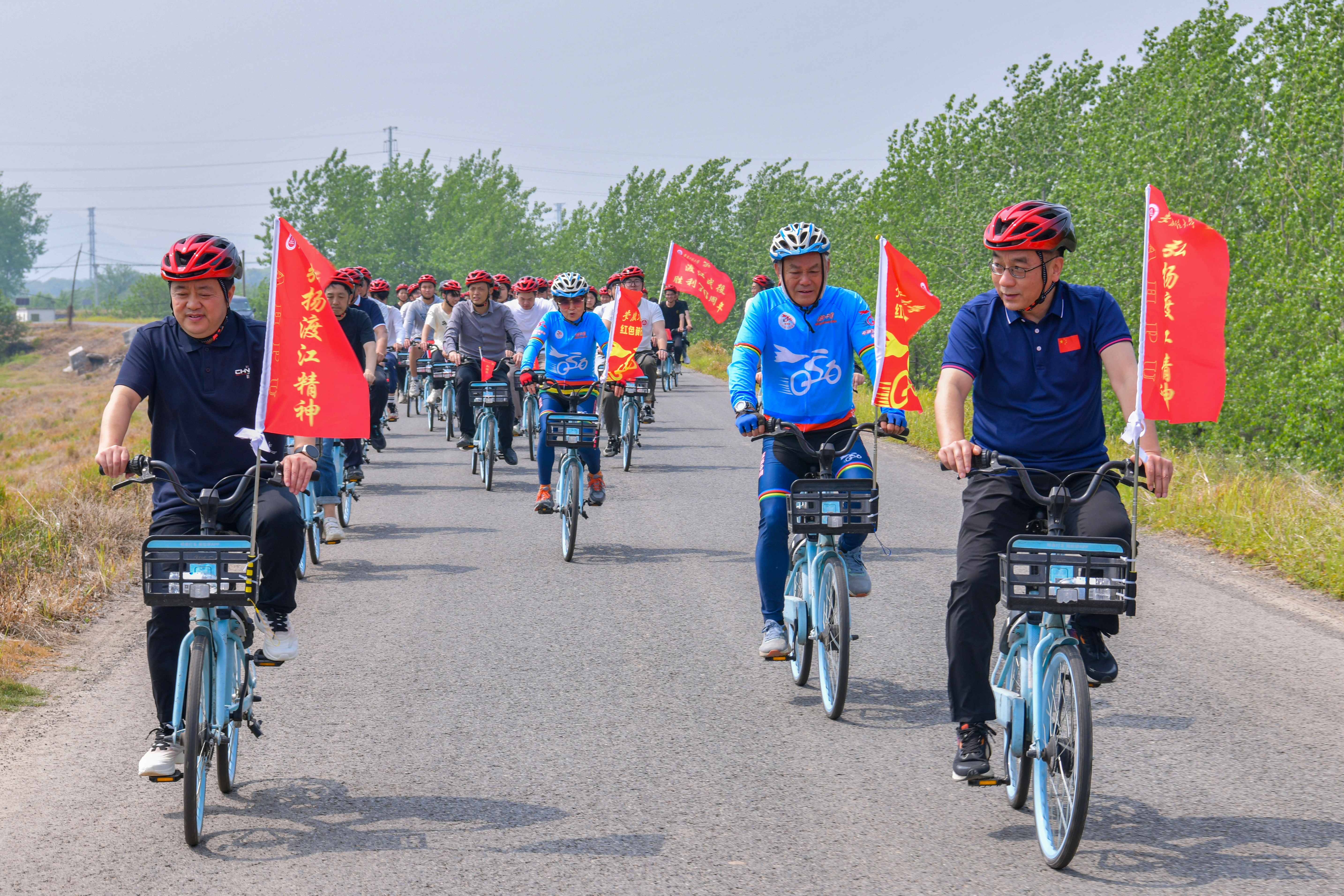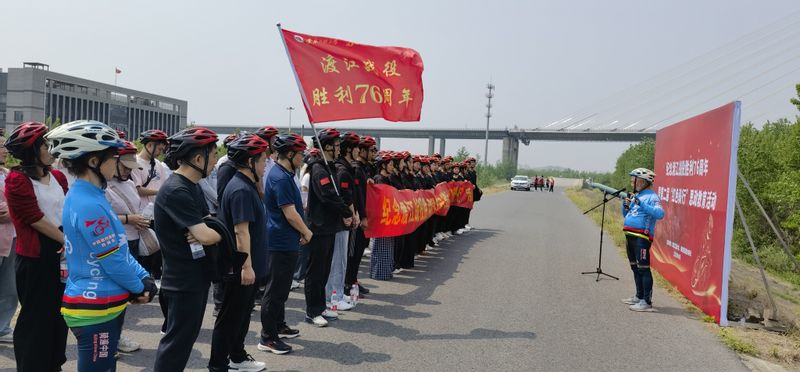 本网讯 4月20日,我校开展纪念渡江战役胜利76周年“红色骑行”思政教育活动。校党委副书记郑健,校党委常委、副校长张开炳出席活动,“红色骑行”思政工作室负责人赵国庆、曹锦芬以及有关单位负责人、师生代表共计80余人参加。