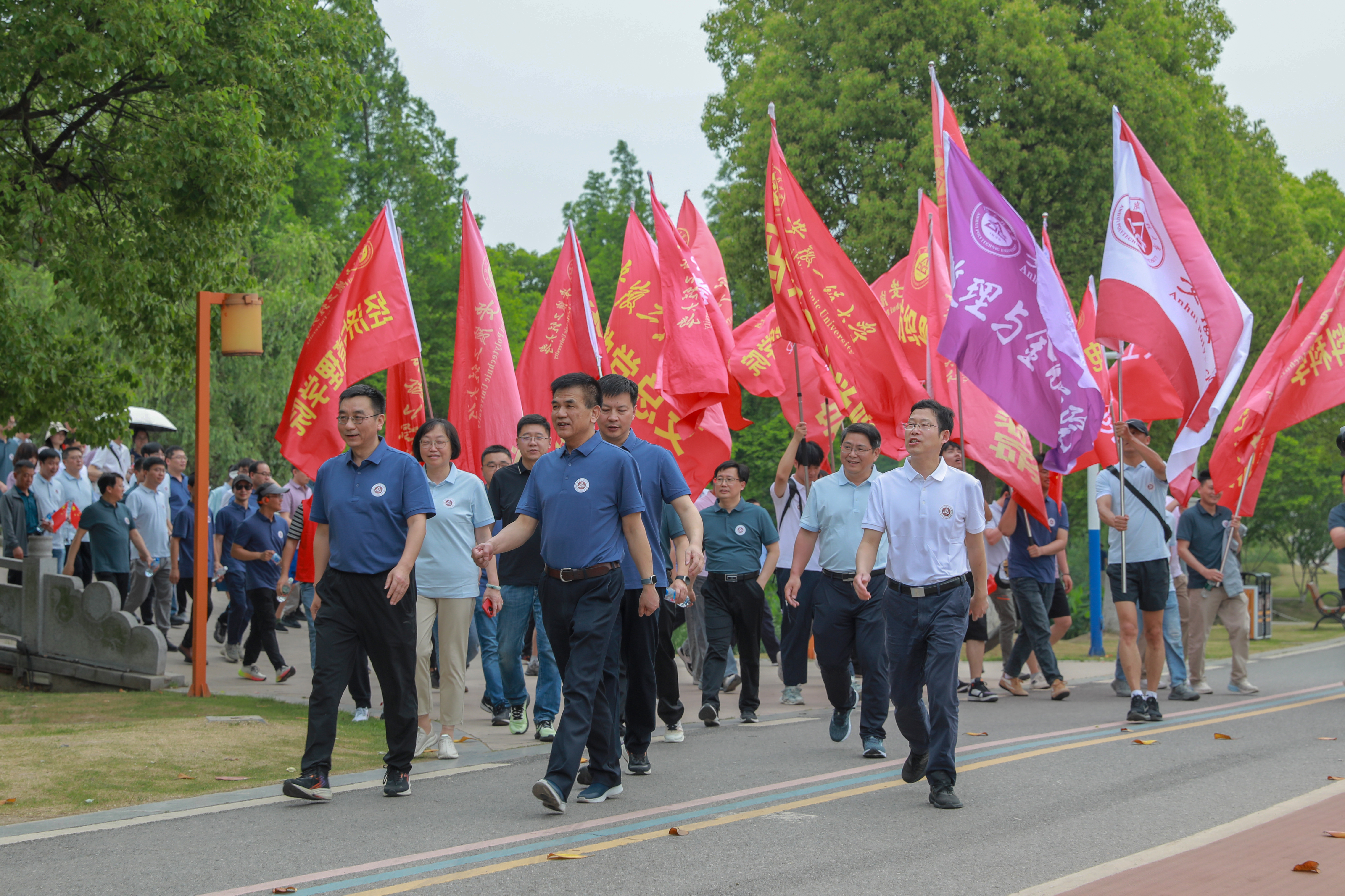 本网讯 4月30日,学校“九秩传薪火 筑梦新征程”教职工徒步走暨校第八届教职工协会活动月启动仪式在雕塑公园举行。校领导卢平、郑健、程双四、凤权、周虹屏、张开炳、王成军出席,近1400名教职工参加。