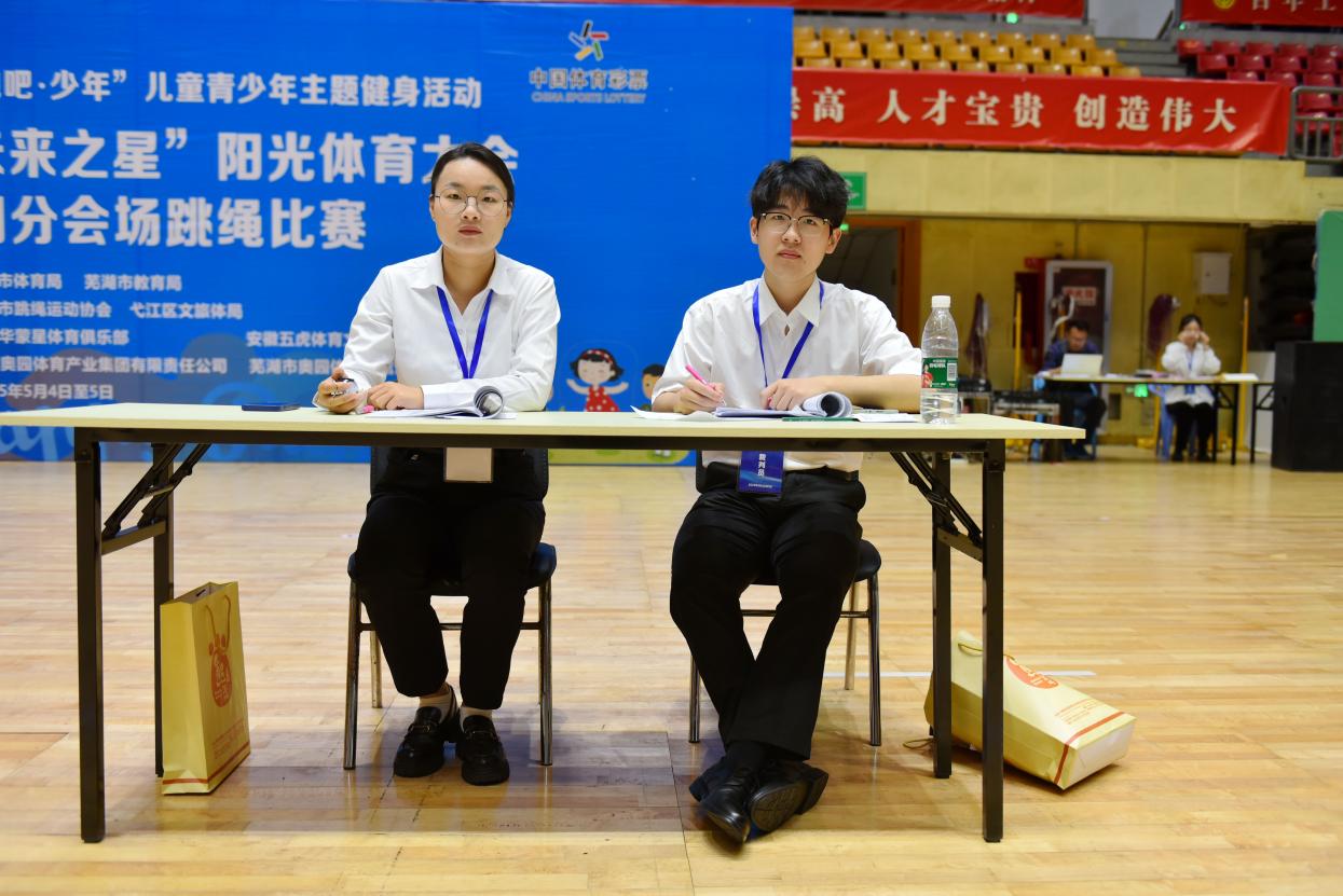 经过芜湖市跳绳运动协会的专业培训,志愿者们提前熟悉比赛规则、裁判流程及应急处理规范。赛场上,志愿者们各司其职、密切配合。裁判对参赛选手的跳绳次数、动作规范进行实时计数与监督,确保每场成绩公正透明;检录员负责细致核对选手身份信息、参赛组别,引导队伍有序候场。尽管赛程紧凑、工作强度大,志愿者们始终以饱满的热情投入赛事服务工作,用严谨态度诠释“奉献、友爱、互助、进步”的志愿精神,认真负责的工作作风得到了赛事主办方的高度认可。