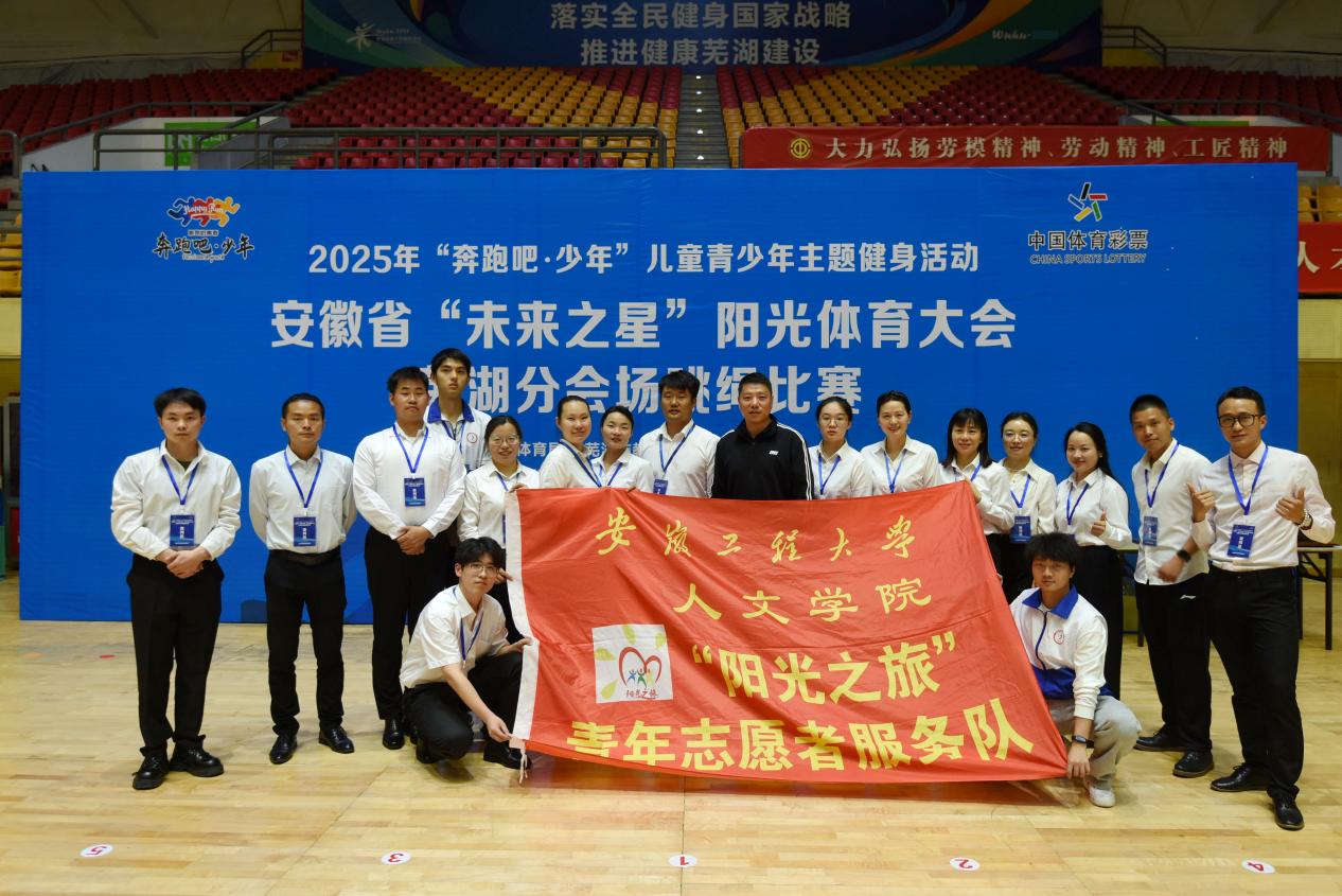 本网讯 近日,由芜湖市体育局、芜湖市教育局联合主办的2025年安徽省“未来之星”阳光体育大会(芜湖分会场)跳绳项目比赛在芜湖市奥体中心体育馆拉开帷幕。我校人文学院“阳光之旅”青年志愿者服务队全程参与赛事的裁判、检录等服务工作。