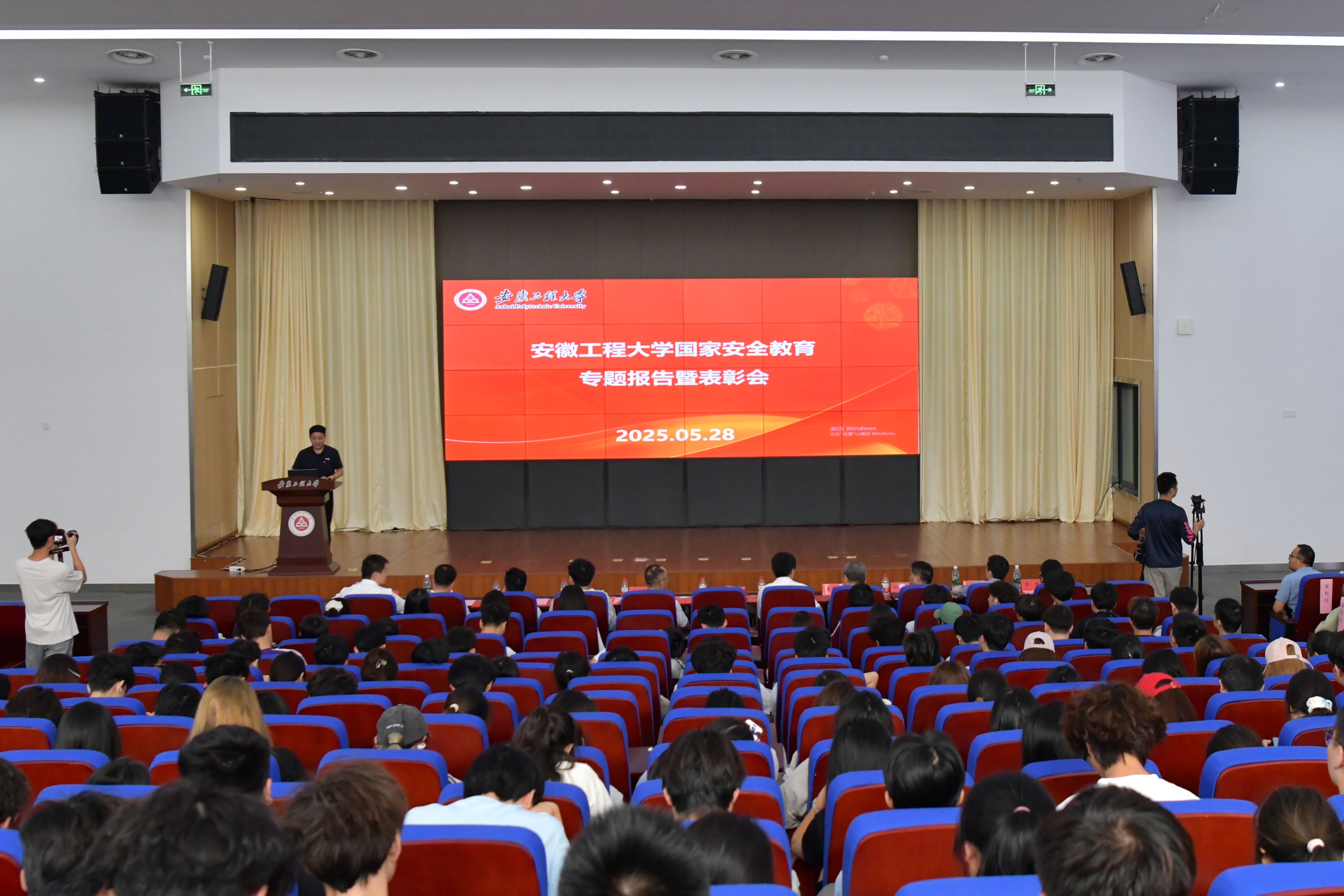 本网讯 5月28日,学校在图书综合楼五楼报告厅举行国家安全教育专题报告暨表彰会。校党委常委、副校长张开炳出席,学校有关部门和学院负责人、辅导员代表及近400名学生代表参加。