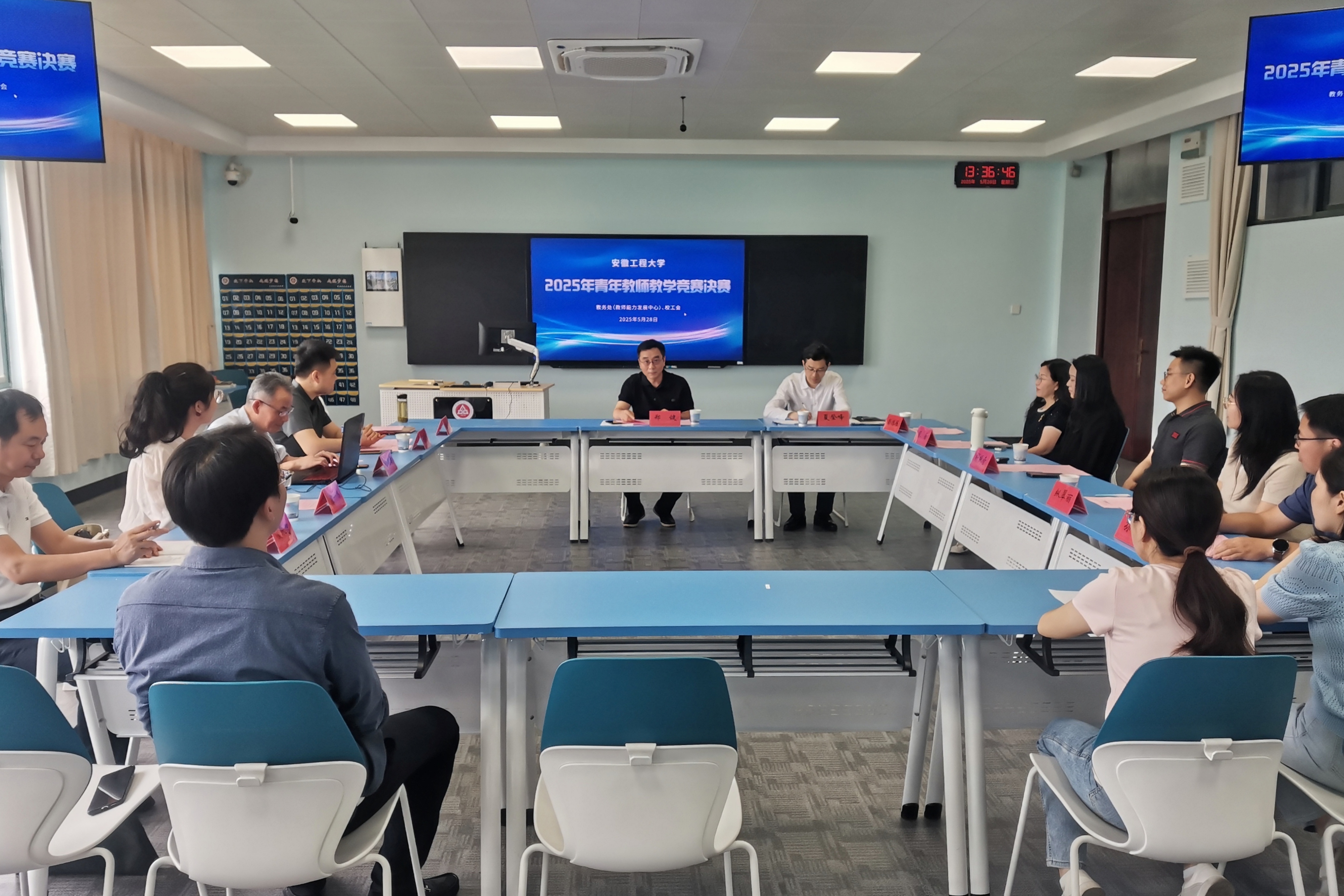 本网讯 5月28日,学校举办2025年青年教师教学竞赛决赛。校党委副书记郑健主持并召开了赛前评委专家组会议,教务处(教师能力发展中心)负责人及相关工作人员参加会议。
