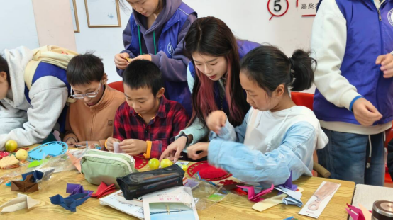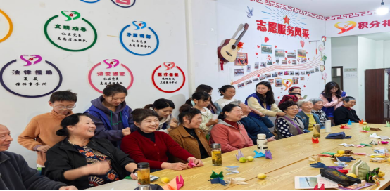 巧艺承情,共绘传统韵味“旧艺新传+节日创想”双轨手工环节趣味盎然。爷爷奶奶们化身“非遗导师”,现场演示“千纸鹤”折法,一边折叠一边分享过往岁月里的重阳趣事,将对晚辈的成长期许藏进每一道折痕;青少年们认真临摹,在指尖流转中承接传统智慧。与此同时,志愿者分发含菊花、茱萸等重阳传统纹样的手工材料包,引导小朋友将节日意象融入创作,鼓励他们主动向长辈请教设计思路,让重阳文化在动手实践中落地生根。