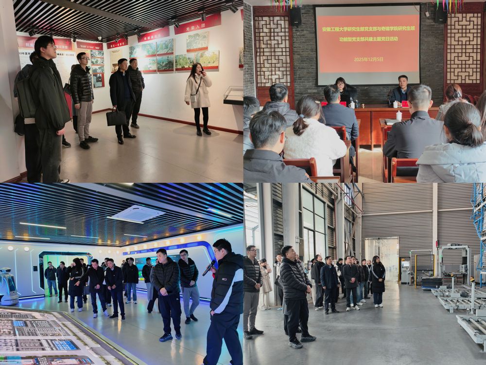 本网讯 为深入推进学习贯彻党的二十届四中全会精神,强化党建引领,促进产学研融合,12月5日,奇瑞学院研究生班功能型党支部与研究生部党支部赴南陵县,联合开展“红色传承砺初心 科创驱动担使命”主题党日活动。