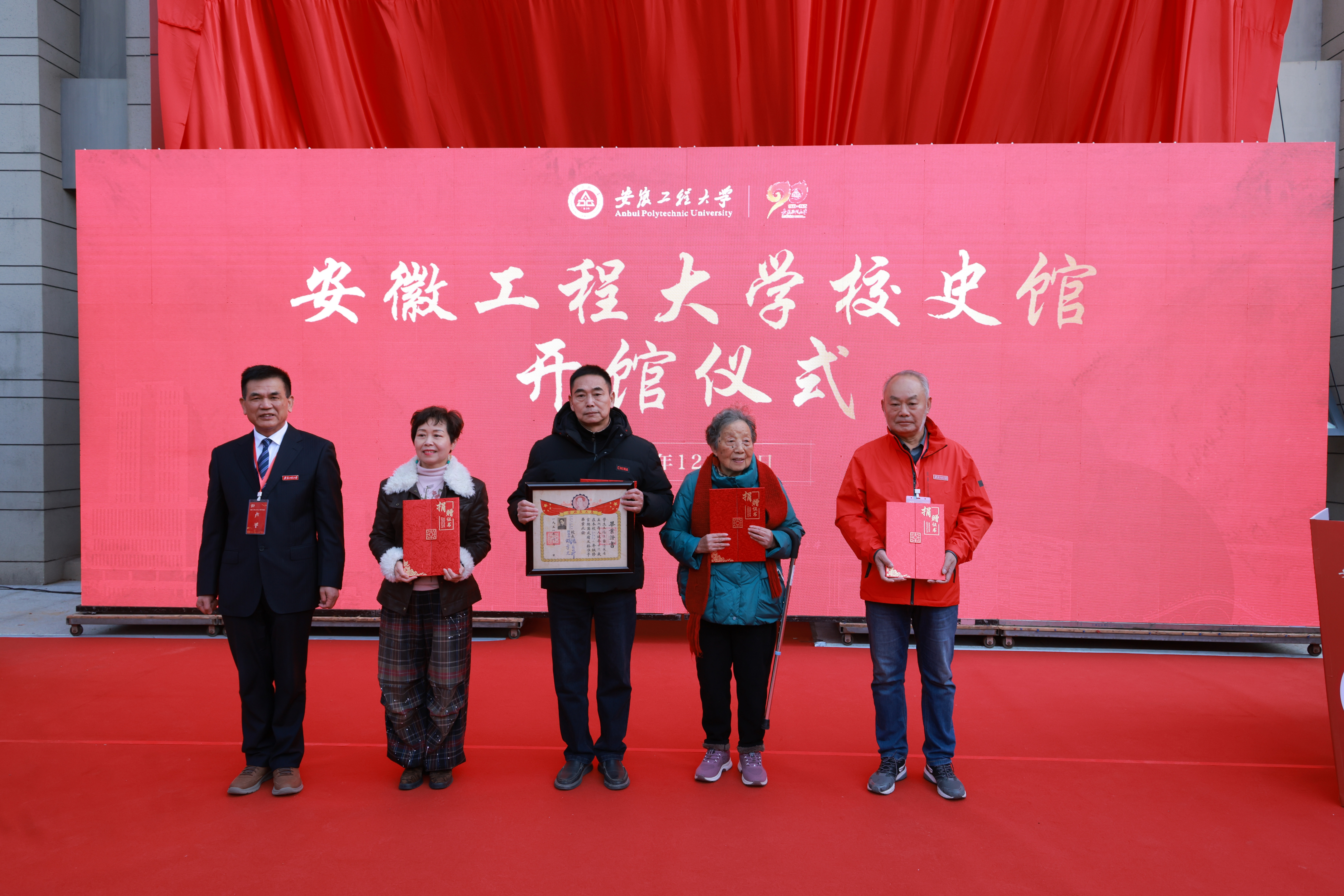 卢平、黄友锐、老领导张宝华、校友代表侯诗益、教师代表李传平、学生代表陈袁共同为校史馆揭幕。