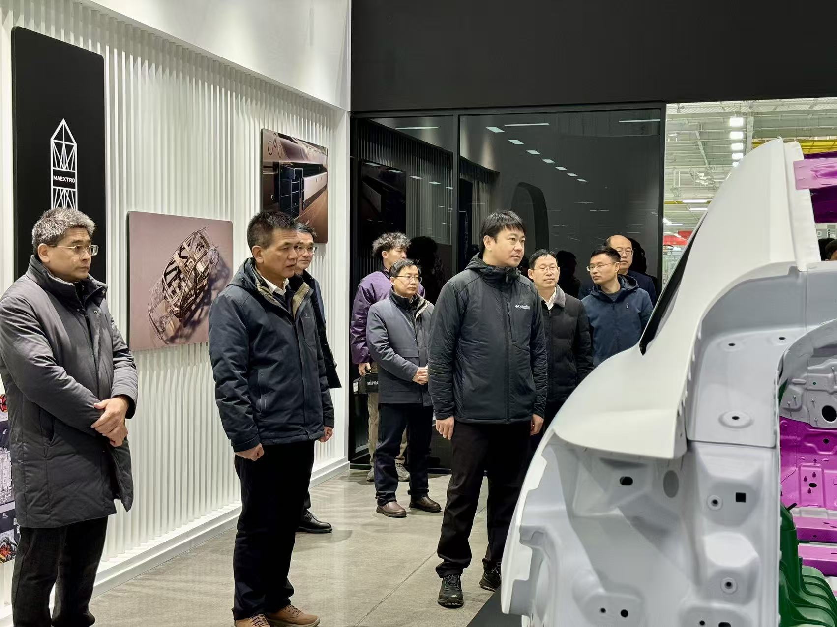 卢平一行先后走进福耀玻璃(安徽)有限公司、尊界超级工厂、蔚来汽车科技(安徽)有限公司第二制造基地分公司等企业。通过实地参观生产一线、研发中心和展示平台,详细了解了企业在先进汽车玻璃技术、超级工厂智能生态、智能制造体系、新能源汽车整车生产及下一代智能驾驶技术布局等方面的发展现状与战略布局。