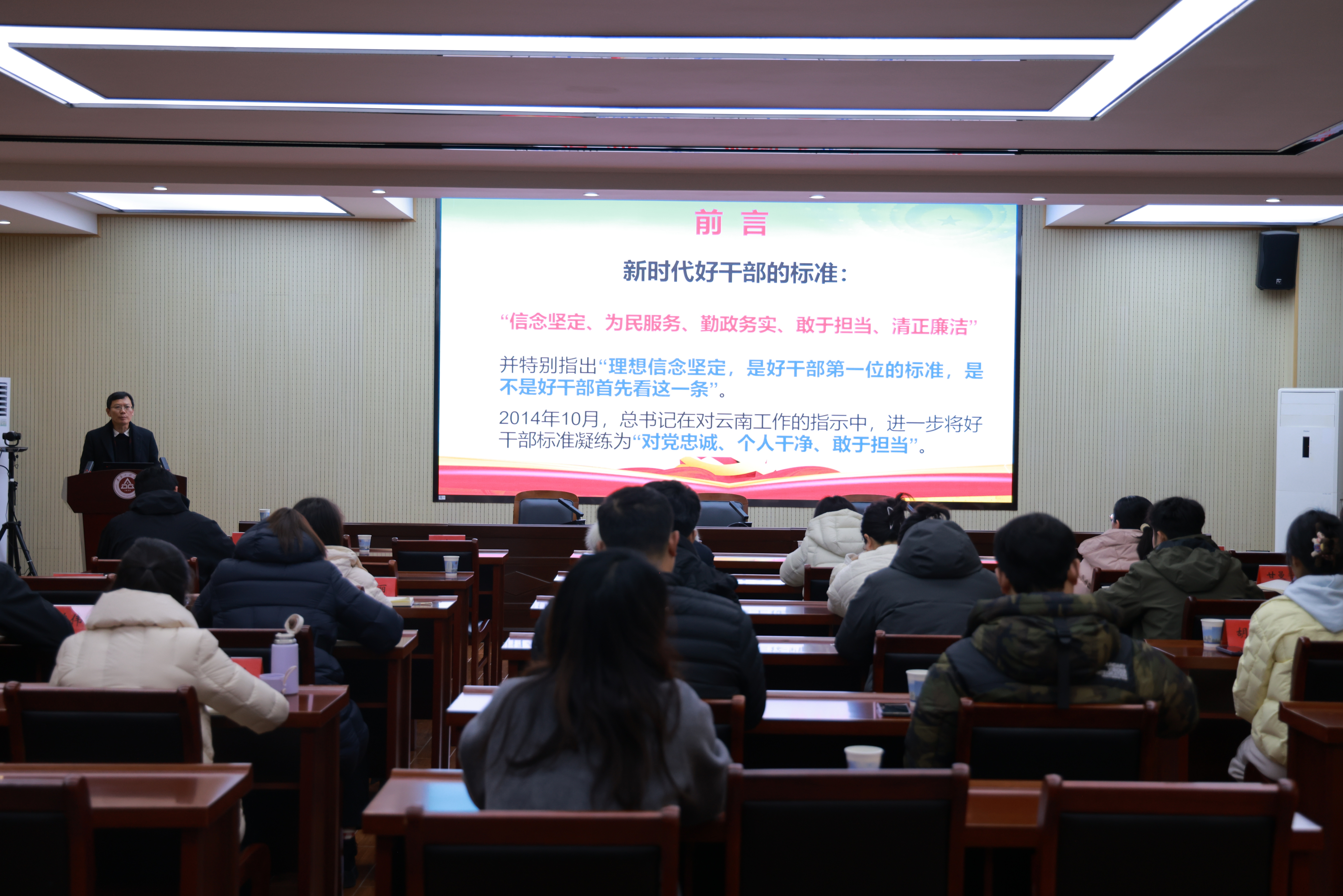 会上,学员代表李林作表态发言。马克思主义学院虞满华教授作题为“争做忠诚干净担当的新时代青年干部”专题讲座。