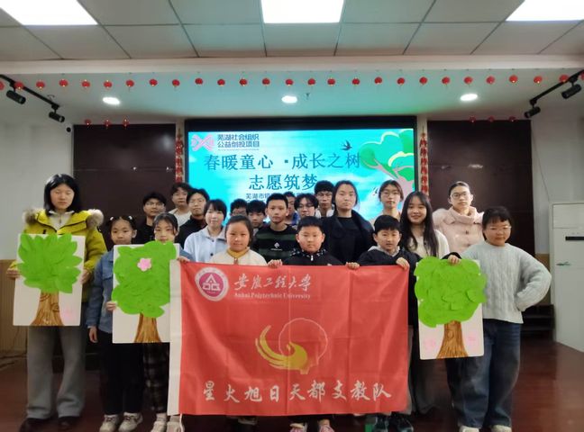 春风化雨,润物无声。各学生社团走进校园、走近少儿群体,用爱心与陪伴播撒希望。译CET英文社走进校附属幼儿园,开展“春暖启萌・彩虹糖”幼儿英语启蒙活动,以春分节气双语体验,让传统文化在生动的双语表达中得以传承,为校园增添了浓厚的文化交融氛围。孤独症志愿者协会开展“春暖同行・微笑节拍”啦啦操教学,借助欢快节奏帮助孩子们提升协调能力、舒缓情绪,以艺术与律动传递温暖。招生志愿者协会赴何湾镇丫山中学,开展“春暖筑梦・乡村公益行”活动,通过分享大学生活、展示芜湖扎染非遗技艺,将色彩与梦想一同带进山区校园,也让传统文化在志愿服务的舞台上焕发新意。志愿者们以真情暖童心,以陪伴助成长,让希望之花在关爱中悄然绽放。