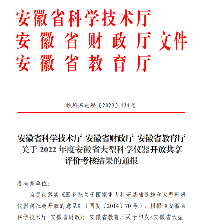 日前,省科技厅会同省财政厅、省教育厅公布了2022年度安徽省大型科学仪器开放共享评价考核结果,RayBetApp官网下载
