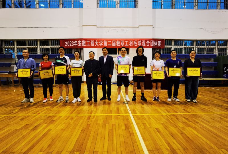 4月24日-28日,由校工会、体育学院主办,校教职工羽毛球协会承办的第二届教职工羽毛球混合团体赛圆满落幕。经过激烈角逐,外国语学院勇夺桂冠,纺织服装学院荣获亚军,电气工程学院、机关、数理与金融学院、后勤、化学与环境工程学院、计算机与信息学院分获三至八名。马克思主义学院和机械工程学院分获最佳组织奖和体育道德风尚奖。赛后,校党委副书记苏国红,主办单位负责人为各优胜队颁奖并合影留念。本次比赛共有18支二级党组织组队参赛,采用小组循环和交叉淘汰赛,分混双、男双和女双。比赛中,场上队员不畏强手、顽强拼搏,点杀、封网、扑救的精彩场面层出不穷,场下队友呐喊助威,喝彩声和鼓掌声不断。参赛队员在赛场上发挥出了较高水平,队员们在切磋羽毛球运动技艺的同时增进了友谊。近年来,学校教工羽毛球协会大力宣传和推广羽毛球运动,不断有教师加入协会,为协会注入了新鲜血液。协会每周开展的培训活动,促进教工羽毛球水平得到大幅度提升,一年一度的教工羽毛球比赛,已经成为促进教工强身健体,提振精神风貌的一项品牌赛事。在比赛中,经济与管理学院志愿者团队的学生参与了本次比赛的服务管理工作,为高质量完成比赛提供了保障。本次教职工羽毛球混