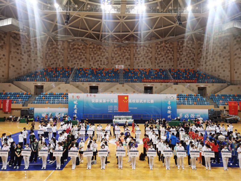 由安徽省政府、安徽省教育厅、安徽省体育局主办的安徽的第十五届运动会高校部武术比赛7月26日至29日在滁州市国际手球馆举行。我校武术代表队以优异成绩顺利完赛于7月30日载誉归来。四年一届的省运会是安徽省最高级别的体育赛事。本次运动会高校部武术比赛吸引了来自全省54所高校共531名运动员参加。学校高度重视本次省运会,校领导张志宏、王绍武、叶常林就比赛多次作出指示和要求。我校学生武术队由体育学院院长胡好领队,主教练汪韧、体能教练张航两位老师指导的10名队员参加比赛。本次比赛中安工程学子不畏强敌,顽强拼搏,在高手云集的赛场上脱颖而出,共斩获3枚金牌、3枚银牌、2枚铜牌和10个前八名的好成绩,金牌数、奖牌数在参赛学校中均名列前茅。其中计算机与信息学院张伟豪同学、艺术学院柴芙蓉同学、外国语学院江安琪同学分获男子甲组自选南拳、女子甲组自选刀术、女子甲组自选枪术冠军。为备战此次省运会,队员们坚持一周六训,每日两次训练课不曾中断,主教练汪韧老师以身作则牺牲午休和晚间休息时间认真指导训练,晚上训练常至十点结束,不曾中断。比赛中,部分队员出现拉伤,腿抽筋的情况,体能教练张航老师全程担任队医一职,给队员们进行