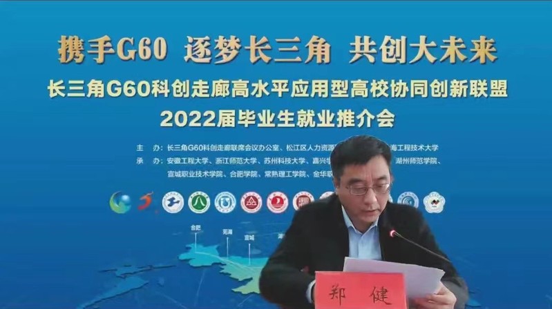 5月13日,长三角G60科创走廊高水平应用型高校协同创新联盟2022届毕业生就业推介会在线上举行,校党委常委、副校长郑健,教务处、科技处、研究生部、学生处、社会合作处负责人,各学院党政负责人和分管就业工作领导参加了会议。会上,郑健代表学校作推介发言,他通过一系列实例和数据,晒出学校在办学特色、专业建设、人才培养、支撑地方产业发展等方面取得的成绩和突破,为毕业生争取成功求职机会。他指出,学校积极贯彻落实教育部、省委省政府关于就业工作的系列决策部署,不断深化就业“一把手”工程,构建“领导主抓、部门统筹、学院主动、全员参与”的工作机制。近年来,学校坚持“立足地方、服务安徽、辐射长三角”的服务面向,围绕长三角一体化战略,不断深化校地、校企产学研合作,服务支撑“三地一区”建设,深入推动区域融合、校企融合、产教融合,积极为毕业生挖掘优质就业岗位;以人才供给侧改革为突破口,在优化专业结构、创新培养模式、明晰就业导向等方面找准校地、校企契合点,鼓励引导毕业生留在长三角地区就业创业,近70%的专业与地方经济支柱产业和战略新兴产业高度对接,每年近40%的毕业生在江浙沪地区就业。郑健表示,2022届学校毕业