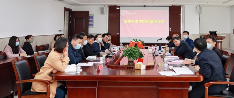 4月5日上午,校党委书记张志宏,校党委副书记苏国红,校党委常委、副校长费为银在马克思主义学院调研,就马克思主义学院建设发展工作开展座谈。办公室、宣传部、教务处、科技处、研究生部、人事处负责人一同参加。马克思主义学院班子成员、支部书记、教研部主任、科级以上干部参加座谈。会议由校党委常委、宣传部部长、马克思主义学院党总支书记孙浩然主持。会上,马克思主义学院党总支副书记、院长吴月红汇报了学院建设情况;学院党总支委员、副院长刘德军、李海涛,教研部主任陈金香、凌取智、余文华、鲍琴先后发言。他们结合实际就打造教学名师,优化人才引进方案,建设省级智库,理清科研与教学的关系,调动思政课教师积极性、主动性、创造性,完善教师考核评价机制等问题提出意见和建议。与会职能部门一一作出回应。费为银指出,学校领导一直高度重视马克思主义学院建设,在学科建设、科研管理、研究生培养等方面向马院倾斜资源;马院在发展过程中要处理好教学和科研的关系,要坚持以教学为中心,科研促进教学;要设法充分调动教师积极性,多出成果,出好成果,拒绝躺平。苏国红指出,在中央、地方和学校领导的高度重视下,马克思主义学院面临难得的发展机遇,马院要充