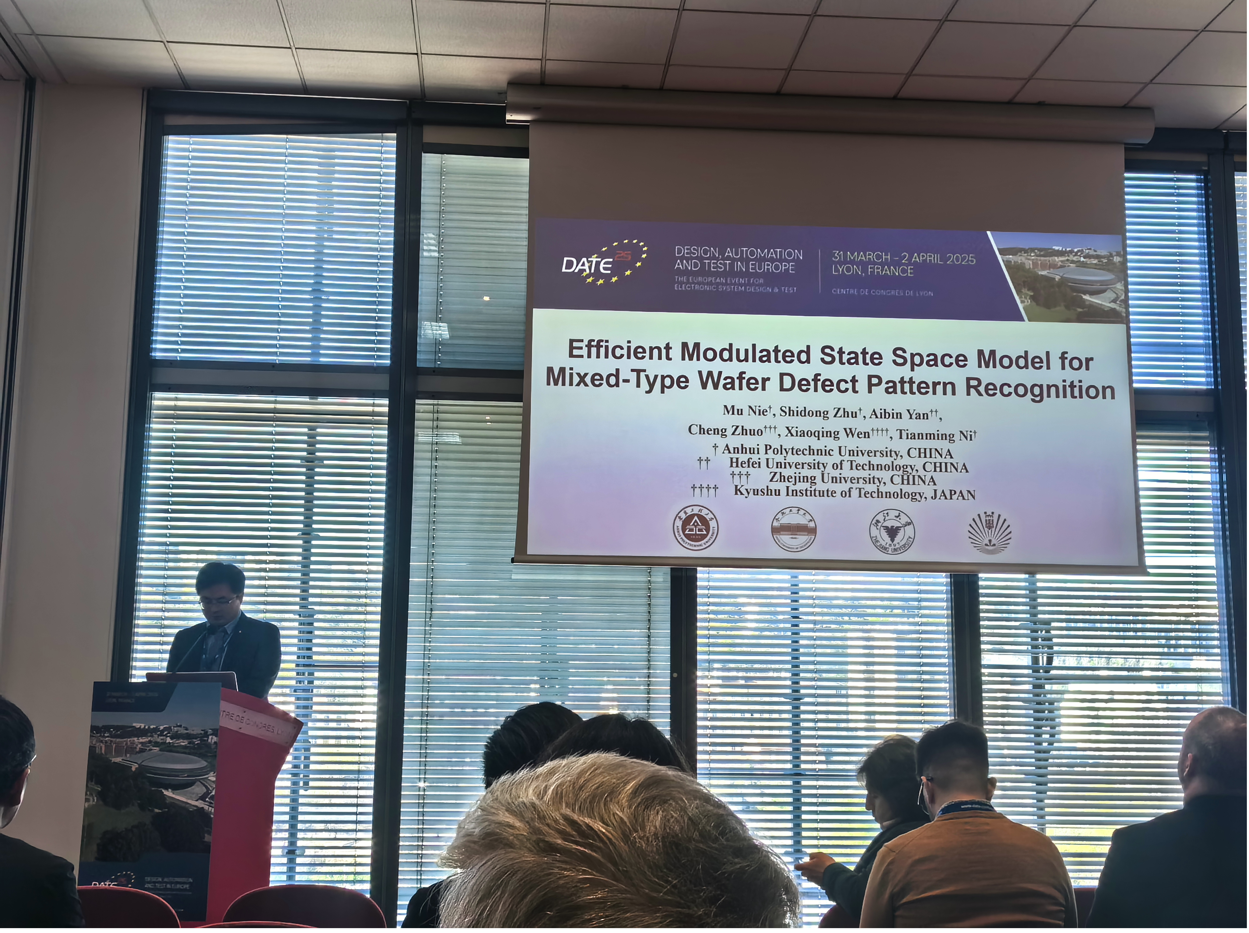 电气工程学院(集成电路学院)集成电路与系统研究所(IICAS Lab)倪天明教授团队论文“Efficient Modulated State Space Model for Mixed-Type Wafer Defect Pattern Recognition”在DATE 2025上发表,第一作者聂牧博士作会议口头报告(regular presentation)。该论文针对人工智能算法在复杂晶圆图缺陷诊断中参数量与运算速度之间矛盾,提出了高效调制状态空间模型,进行选择性四向扫描建模;引入方向调制模块,自适应分配各向扫描的融合权重,提高线性扫描的有效性;并将深层网络的知识蒸馏至浅层网络,加速网络的推理。通过改进空间建
