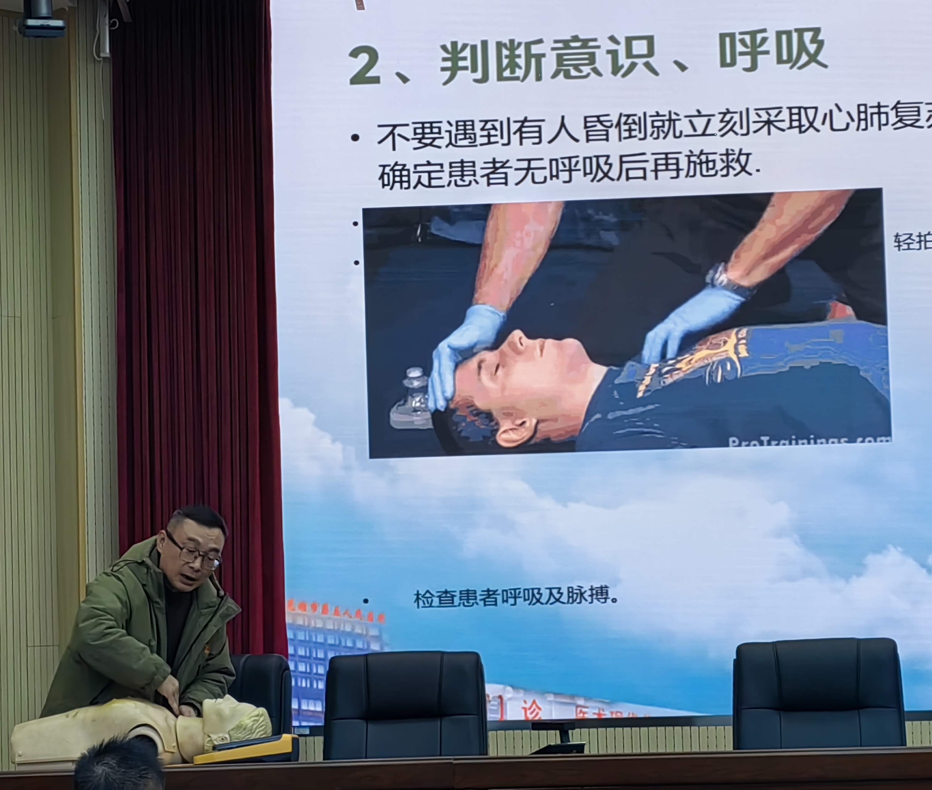 11月27日上午,后勤保障处、学生处在A座104会议室联合举办了“常用急救知识”专题讲座。校医院医护人员和各学院辅导员老师共一百余人参加了现场学习。安徽省皖南康复医院(芜湖市第五人民医院)院前急救科主任侯捷副主任医师主讲。侯捷通过生动详实的课件和现场实物演示,为大家科普了心肺复苏术、AED的使用、海姆立克急救法、烫伤和创伤的现场急救措施。他强调,遇到突发意外事件,要先判断周围环境是否安全,应在确保自身安全的情况下采取急救措施,同时请其他人拨打120急救电话,为患者得到有效救治争取宝贵时间。本次急救知识技能培训旨在提升教职工面对突发意外事件时的急救能力,为建设平安健康校园提供助力。(文/图:戴丽华;审核:李敬华)