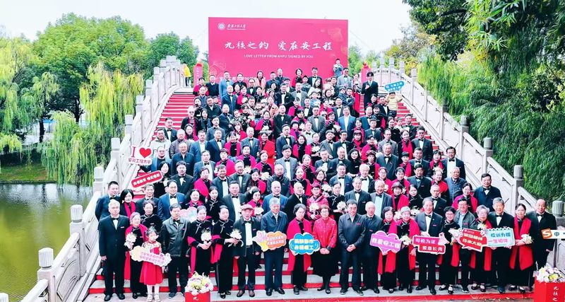 校领导、老教师代表与校友们共同为六安校友会捐赠的“爱之源”纪念石揭幕。这方饱含着“同窗之爱、母校之爱、师生之爱”的纪念石默默记录了所有的温情,从此也成了安工程永恒的情感地标。正如校党委副书记郑健在致辞中所说:“‘爱之源’是连接母校与校友的情感纽带,校友伉俪用一生相伴诠释了‘九秩耕耘,传承大爱’的坚守。这场活动不仅是校友的重逢,更是母校精神的传承。”