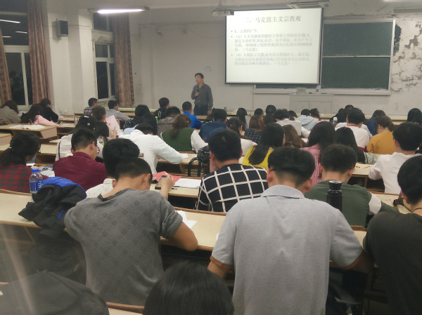 4月11日(周三)晚七点,马克思主义学院教授刘聪为生化学院分党校第八期预备党员培训班做了以“党的宗教观与宗教政策解读”为题的学习报告,向同学们解释了什么是党的宗教观,宗教的发展以及党对于宗教的政策。