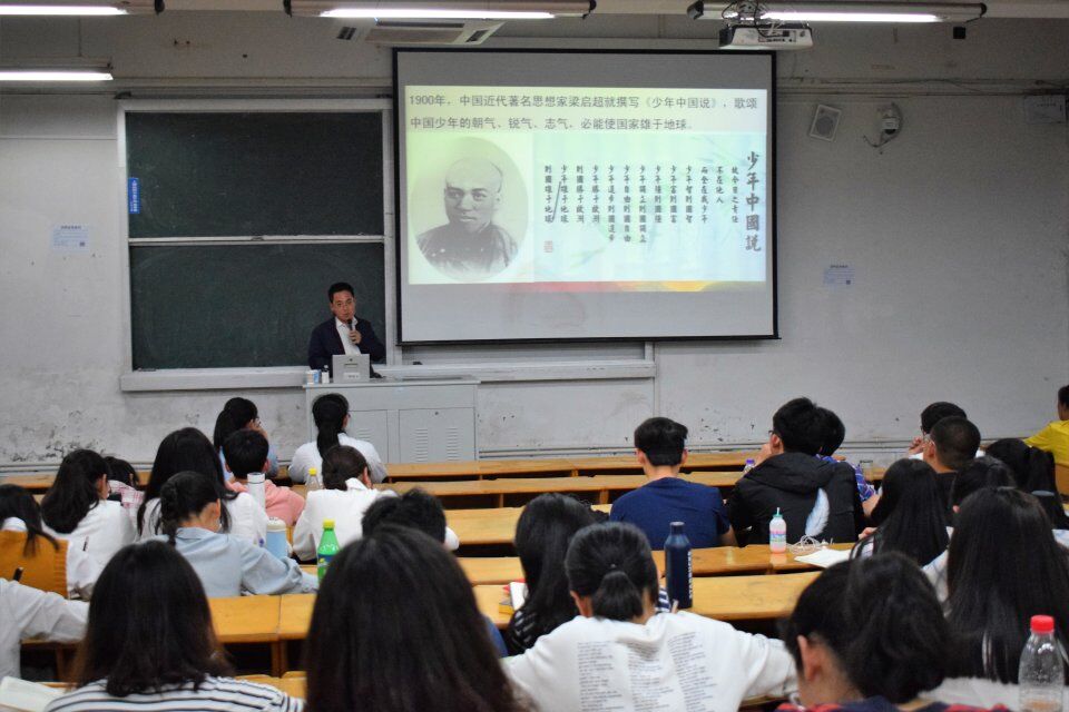 讲座主要围绕五个方面展开:青年兴则国家兴、青年强则国家强,志当存高远,梦想从学习开始,梦想靠本领成就、有多大担当才能干多大事业,在感悟时代中、紧跟时代中珍惜韶华。李海涛首先带领同学们梳理了十九大报告,指出了广大青年要坚定理想信念,志存高远,脚踏实地,勇做时代的弄潮儿,在实现中国梦的生动实践中放风青春梦想,为人民利益的不懈奋斗中抒写人生华章。随后,他通过详细介绍梁启超先生的《少年中国说》、陈独秀先生的《青年杂志》、李大钊先生的《晨钟》、毛泽东、习近平对青年人的殷切寄语,让青年们深刻地思考理想信念的重要意义。接着,李海涛以“我会干什么?我能干什么?我将干什么?”三个问题警醒青年们今后要做到“勤学、修德、明辨、笃实”。最后,李教授又谈及了五个素养:理论素养、品德素养、知识素养、创新素养、实践素养,让青年人在感悟时代紧跟时代中不负韶华。