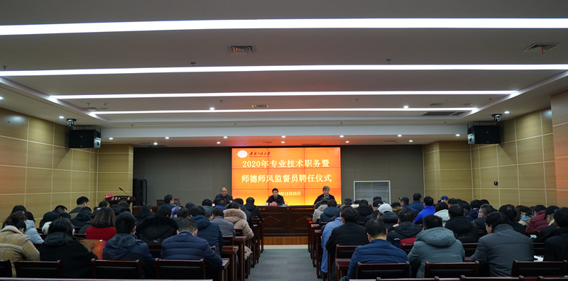王绍武宣读了2020年专业技术职务聘任文件,费为银宣读了学校第一批师德师风监督员聘任名单。