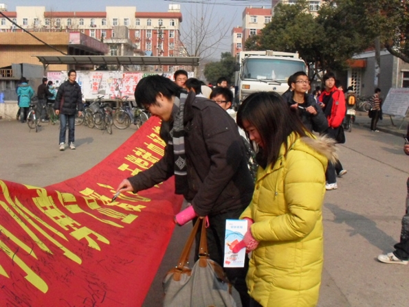 为了让同学们对血液科普知识有更多了解,积极参与无偿献血,2010年1月6日,在校团委的指导下,我院英语2091班团支部在全校范围内开展了义务献血宣传活动。