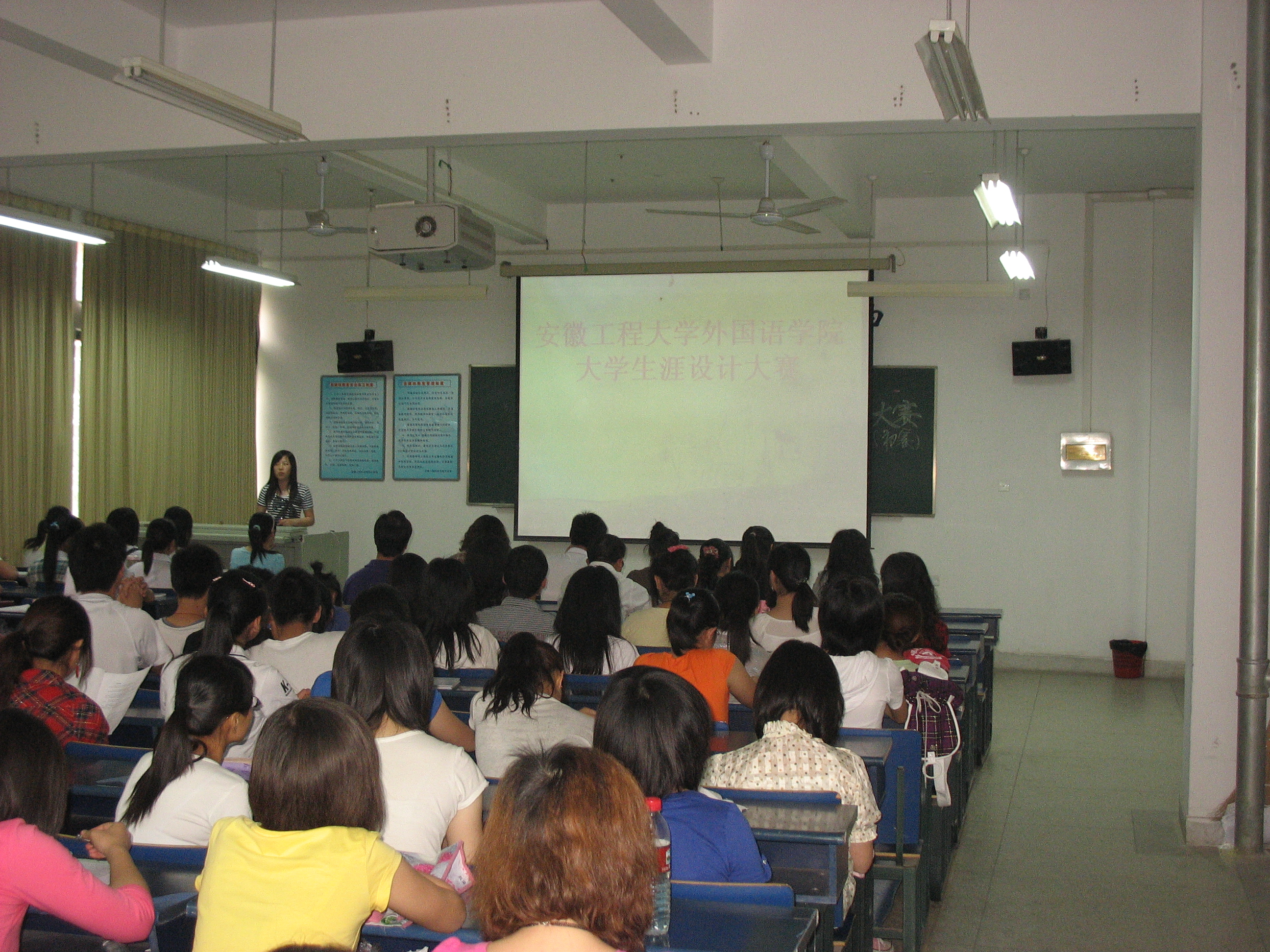 把握今朝,绘成功蓝图--记外国语学院大学生涯设计比赛决赛 赛中选手对自己的设计进行PPT展示,12位选手一一向大家解读自己的大学生涯规划的详细步骤,包括自我评估、环境分析、目标设计、调整方案等,阐述设计思路,每位选手展示完毕由评委进行提问,最终英语092班刘雨濛和英语093班王娟凭借清晰的规划思路,出色的语言表达获得本次比赛的冠军。 赛后,院团委书记李烨对本次大赛进行点评,他肯定了同学们的付出与努力,给予本次比赛高度评价,同时也指出存在的一些问题,他希望大学生涯设计应突破固有的模式,采取形式多样的设计思路,以丰富大学生涯设计的内涵。 最后,谈丽华在讲话时强调,此次比赛有助于一年级同学正确审视自我,明确上大学的目的,同时她也指出,合理的大学生涯规划固然重要,但关键在行动,只有把规划落到实处,才能体现本此大赛的意义所在。