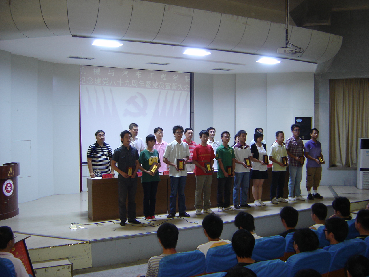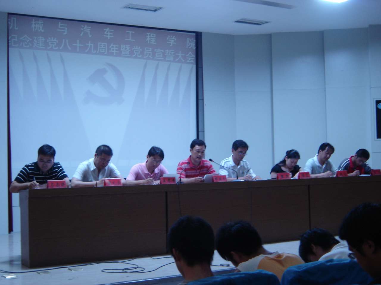 为庆祝中国共产党建党八十九周年,6月22日下午4:30,机械与汽车工程学院庆祝建党八十九周年暨党员宣誓大会在校学术报告厅隆重举行。机械工程学院党委副书记邓英扣出席了本次大会。大会由学生党支部书记黄炜主持。