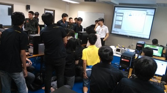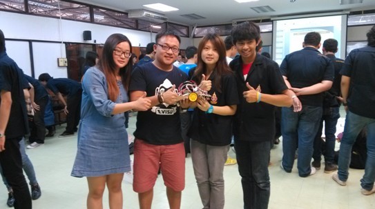 在最后的比赛中,我和泰国同学一组,我们组获得了第四名的好成绩。我们学习的很认真,因为我们的教程都是英文授课,难免会有不懂的单词什么的,所以就要求我们自己自觉的在研究室好好学,不懂的问中国留学生,问