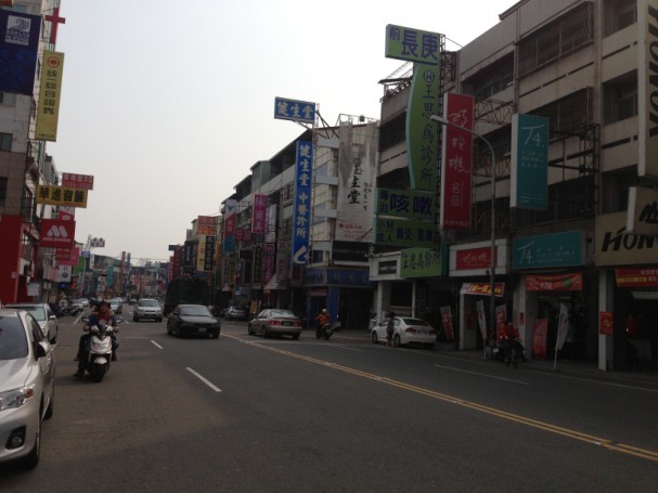 我的学校在台中,这里气候温暖潮湿,夏天会闷热。台中的街道给我最大的感觉就是像电视剧里的旧上海滩。长长的街道两旁的店铺招牌都是竖着挂在半空中,上面写着大大的繁体字。台中的街上几乎没有行人,这里基本都是本地人,外地人很少。本地人都是在街上骑着机车,到了目的地,机车停在门口,下了机车卸了头盔进去。台中的街道上就是公车,轿车和机车,也没有自行车。冷饮店很多,冷饮种类也很丰富,冷饮加料也很丰富,有爱玉,粉圆,多多等。台中人的生活特色是慢节奏,悠悠漫长的下午,几家店铺懒洋洋的开着张,三三两两的客人不时进出,停在店门口的摩托车沐浴在午后的阳光里,像是在诉说悠久而漫长的人情故事。