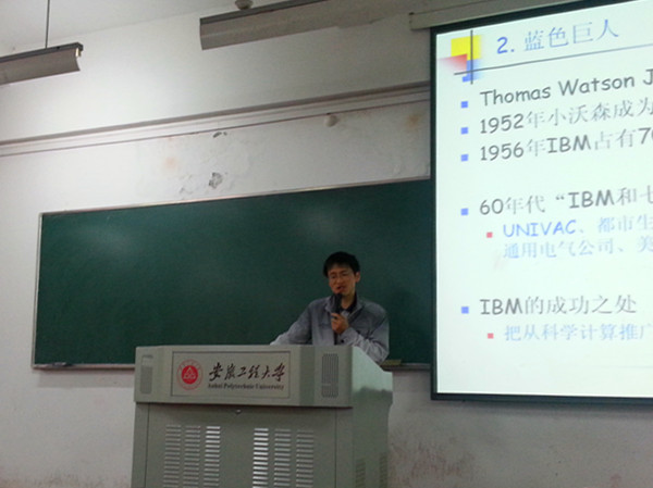 11月20日下午,计算机与信息学院在6教113教室举办了“技术革命与工厂巨人的兴衰”主题讲座。此次讲座是学院“教学质量月”系列活动之一,由计算机与科学工程系唐肝翌老师主讲,计算机科学与技术专业和物联网工程专业2013级全体学生聆听了此次讲座。